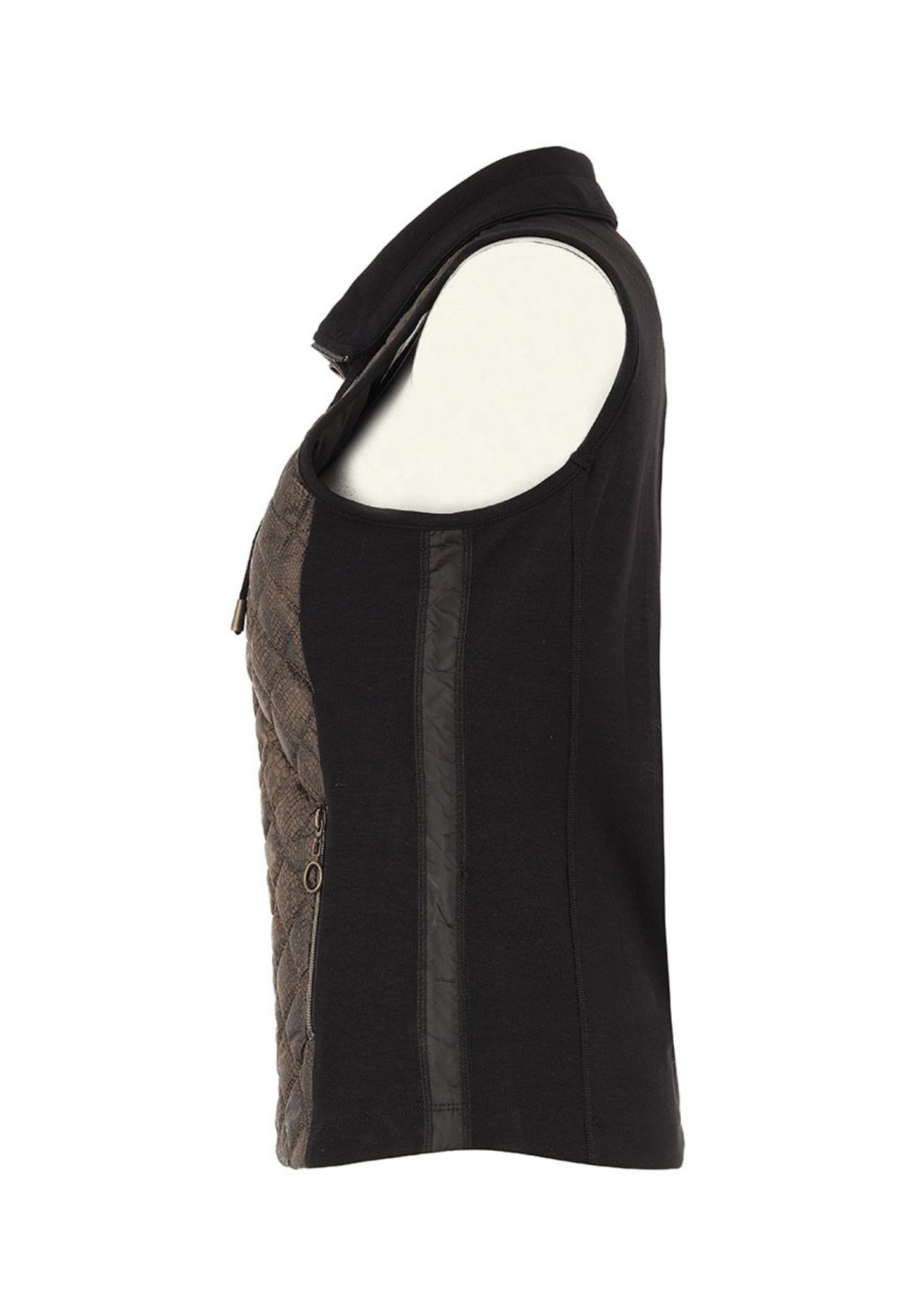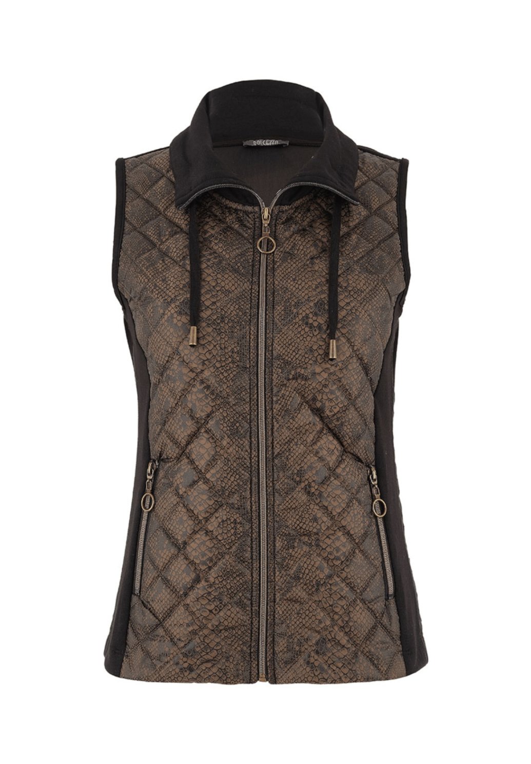 Dolcezza prošívaná vesta – styl a pohodlí v jednom. Objevte všestrannou vestu Dolcezza, ideální pro chladnější dny. Jemný hadí vzor v kombinaci s měkkými černými bočními panely dodává outfitu šmrnc, zatímco plný zip, vysoký límec s nastavitelnými šňůrkami a praktické kapsy se zipem zajišťují pohodlí a funkčnost. Vesta je vyrobena z měkké a pružné směsi, takže se skvěle vrství přes lehké svetry nebo trička a vytváří elegantní a snadno nositelný look každý den.