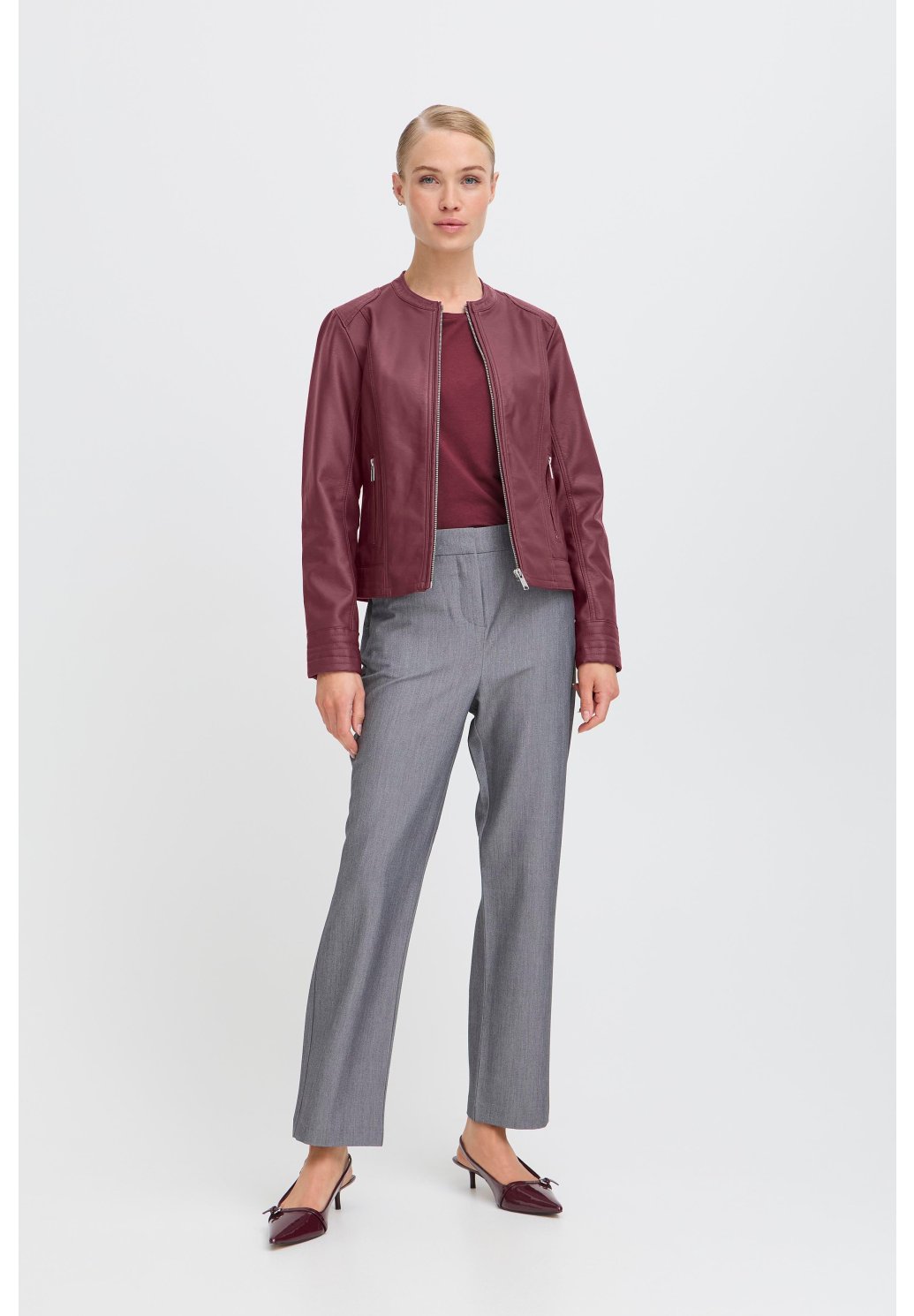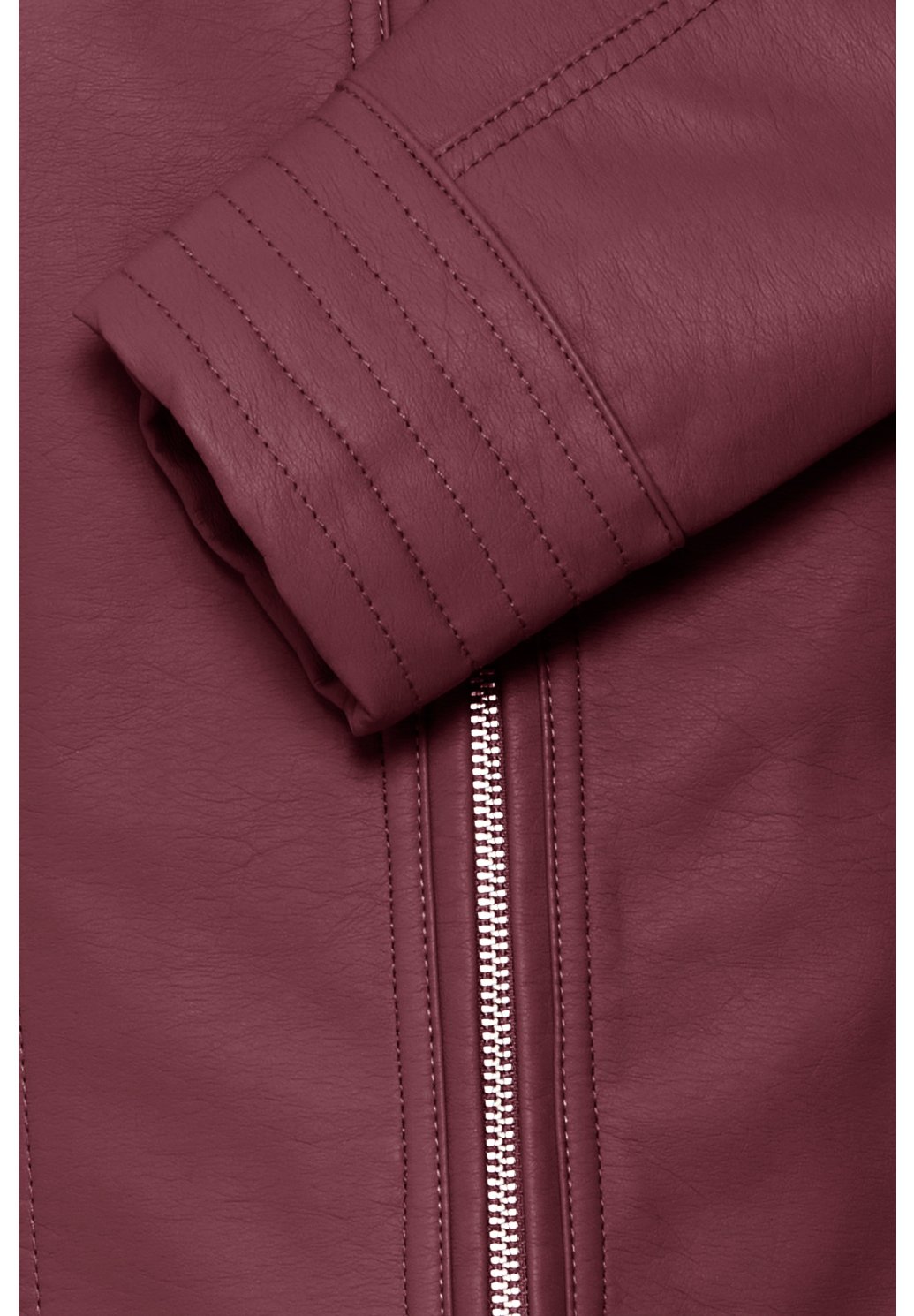 Dámská bunda z imitace kůže s kulatým výstřihem a zipem vpředu je kousek, který nikdy nevyjde z módy. Decentní prošívání a zipové kapsy dodávají styl i praktičnost – ideální jak k ležérnímu, tak i poloelegantnímu outfitu.