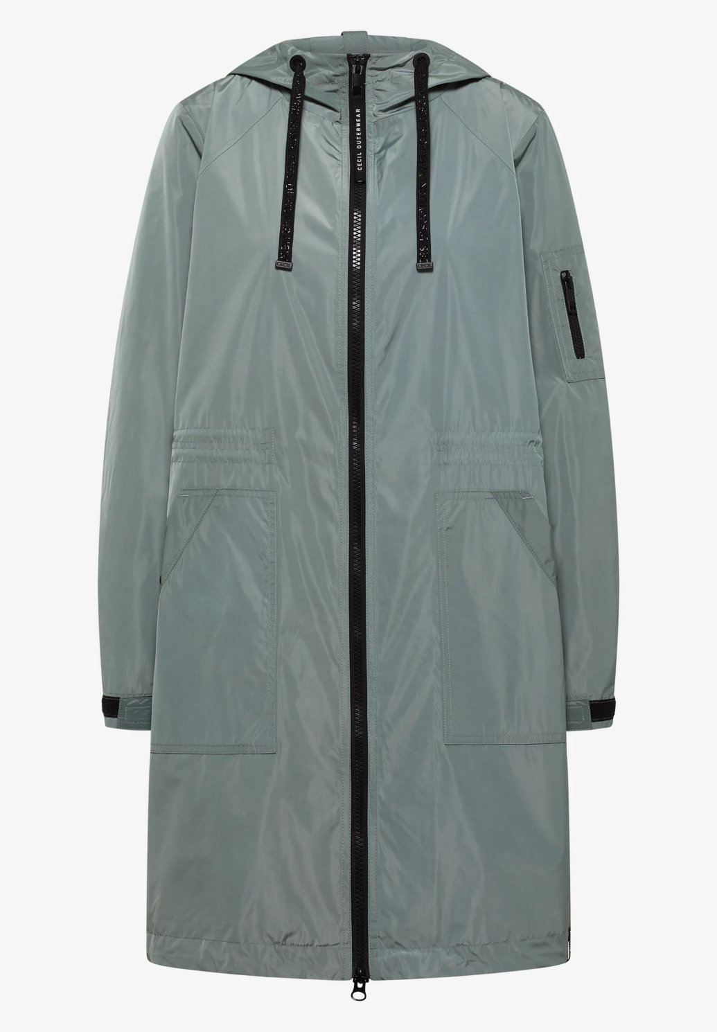 Tato dámská bunda od značky CECIL kombinuje sportovní design s praktickými detaily: Kapuce se stahovací šňůrkou a vnitřní stahovací šňůrka v pase vám umožní přizpůsobit si siluetu. Dlouhé rukávy s manžetami a detail na zip na rukávu dodávají bundě moderní nádech. Boční kapsy s knoflíky nabízejí pohodlí a každodenní praktičnost – ideální pro váš ležérně-sportovní vzhled a praktické pohodlí v chladných dnech.