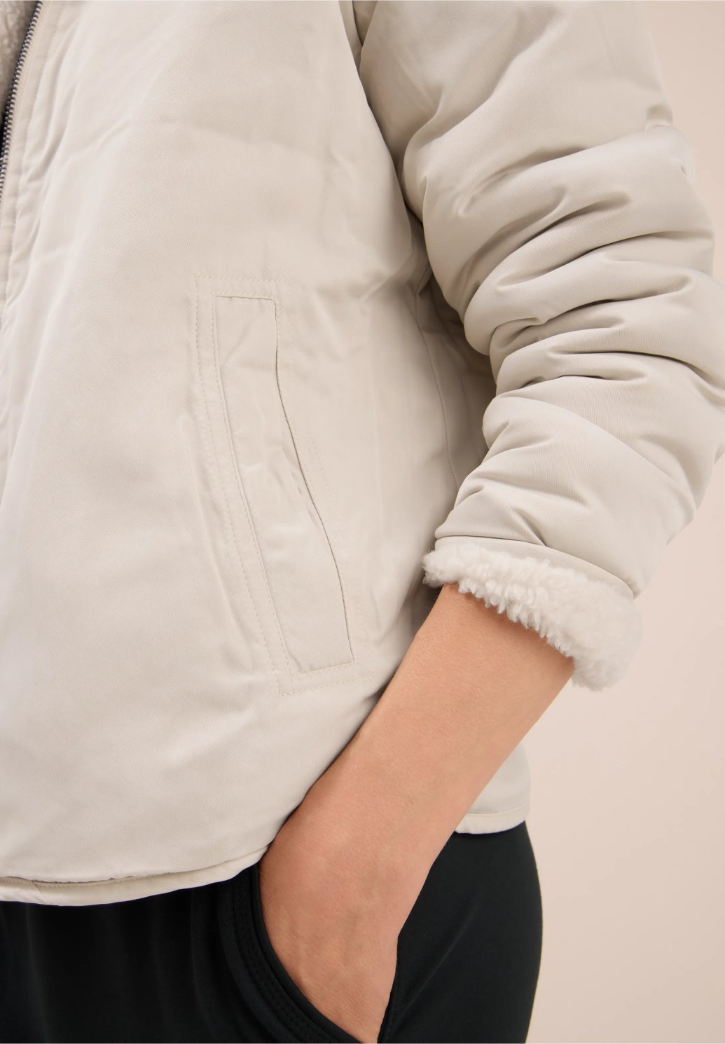 Dva outfity v jednom: Tato oboustranná dámská bunda od CECIL vám nabízí výběr mezi hladkým povrchem a příjemnou plyšovou látkou. Stojáček, boční kapsy a zip s dalším knoflíkovým zapínáním zajišťují pohodlí a funkčnost. Všestranný doplněk pro váš pohodlný každodenní outfit.