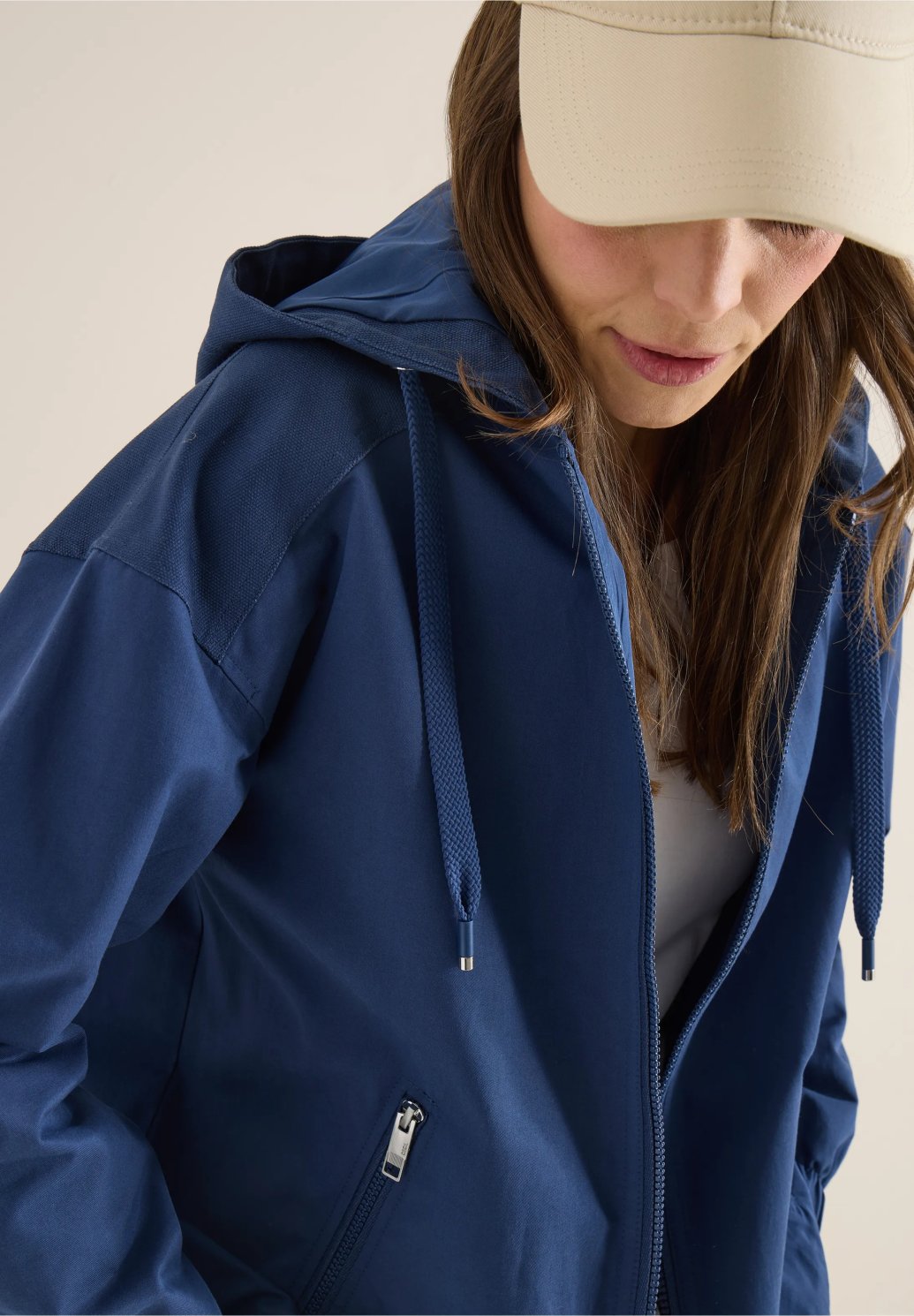 Tato dámská bunda od značky CECIL zaujme svým sportovním vzhledem a pohodlným pocitem. Směs bavlny je pohodlná na nošení a kapuce se stahovací šňůrkou nabízí extra ochranu. Boční kapsy na zip a elastický lem se stahovací šňůrkou zajišťují funkčnost. Ideální pro nekomplikované každodenní outfity.