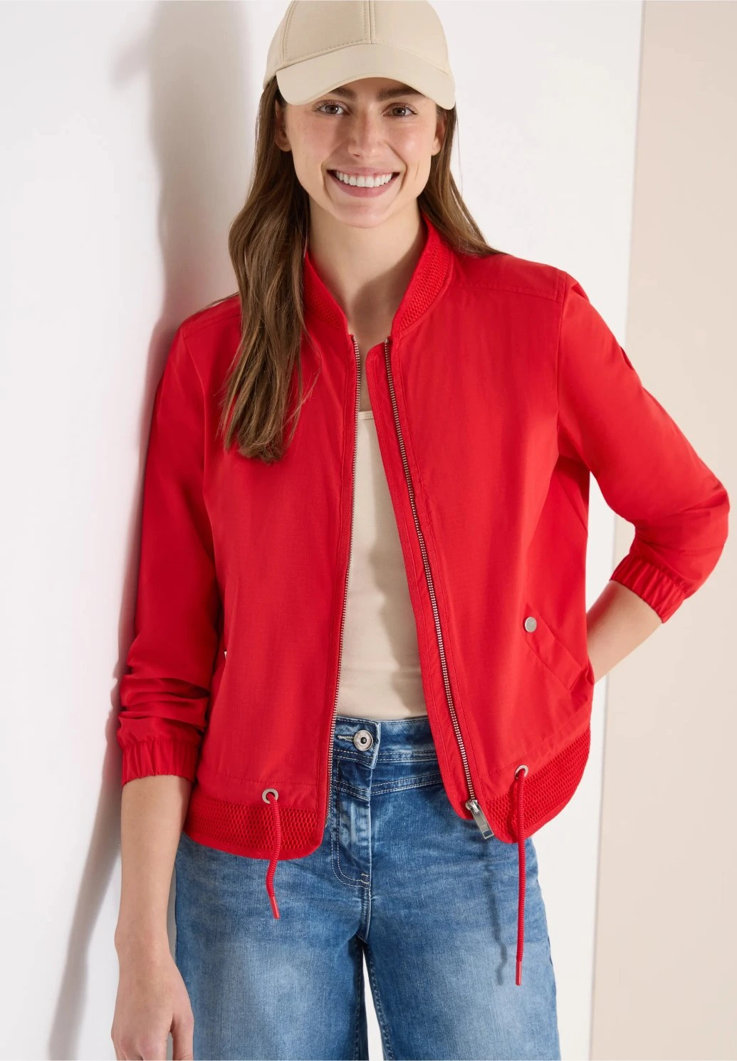 Lehká dámská bunda v výrazné červené barvě je ideální kousek pro jarní a letní dny. Moderní střih se zapínáním na zip a pružnými lemy zajišťuje pohodlí i skvělé padnutí. Stylový design snadno oživí každý outfit a skvěle se kombinuje s džínami i sportovnějšími kousky – perfektní volba pro každodenní nošení.