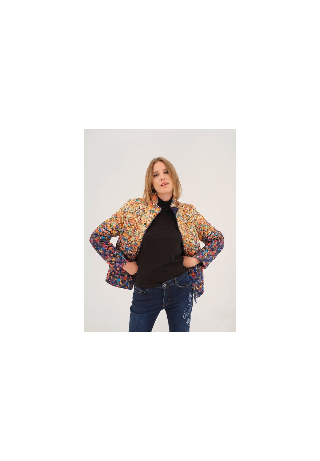 Dámská bunda s originálním uměleckým motivem od Jennifer Lommers je výjimečným kouskem, který spojuje pohodlí a styl. Má dlouhé rukávy, zapínání na zip a moderní stojáček, který dodává sportovně-elegantní vzhled. Praktické přední kapsy na zip a jemně pružné úpletové panely po stranách zajišťují maximální komfort i volnost pohybu. Tato bunda je ideální volbou pro každodenní nošení, když chceš vyniknout originálním designem a cítit se skvěle zároveň.