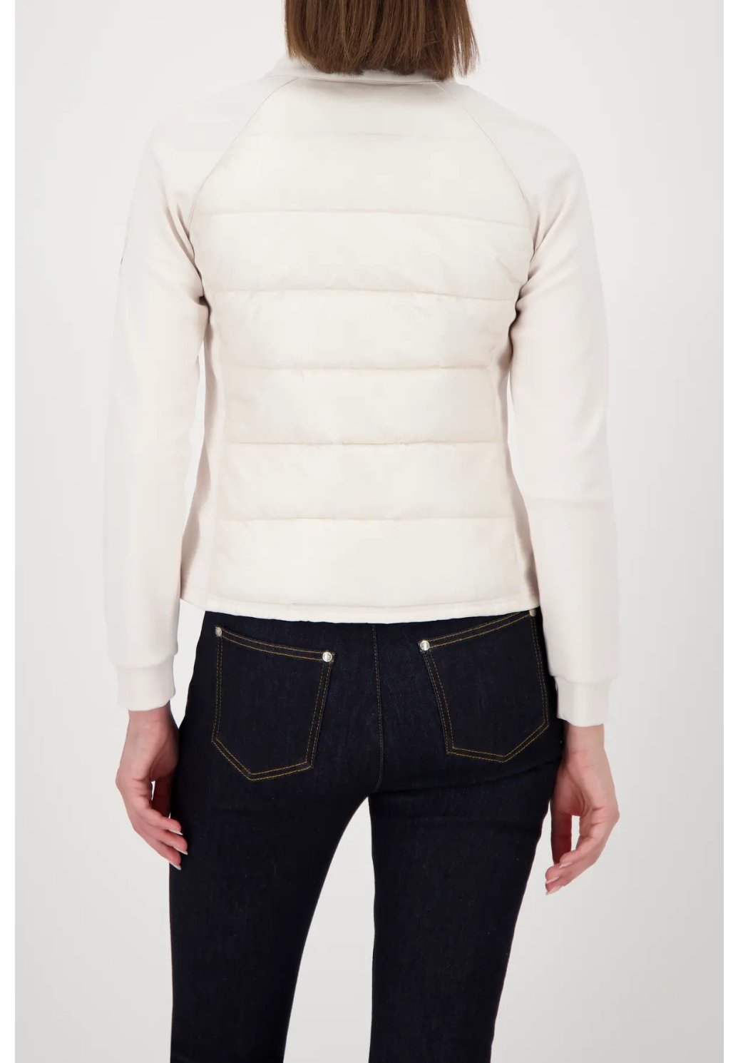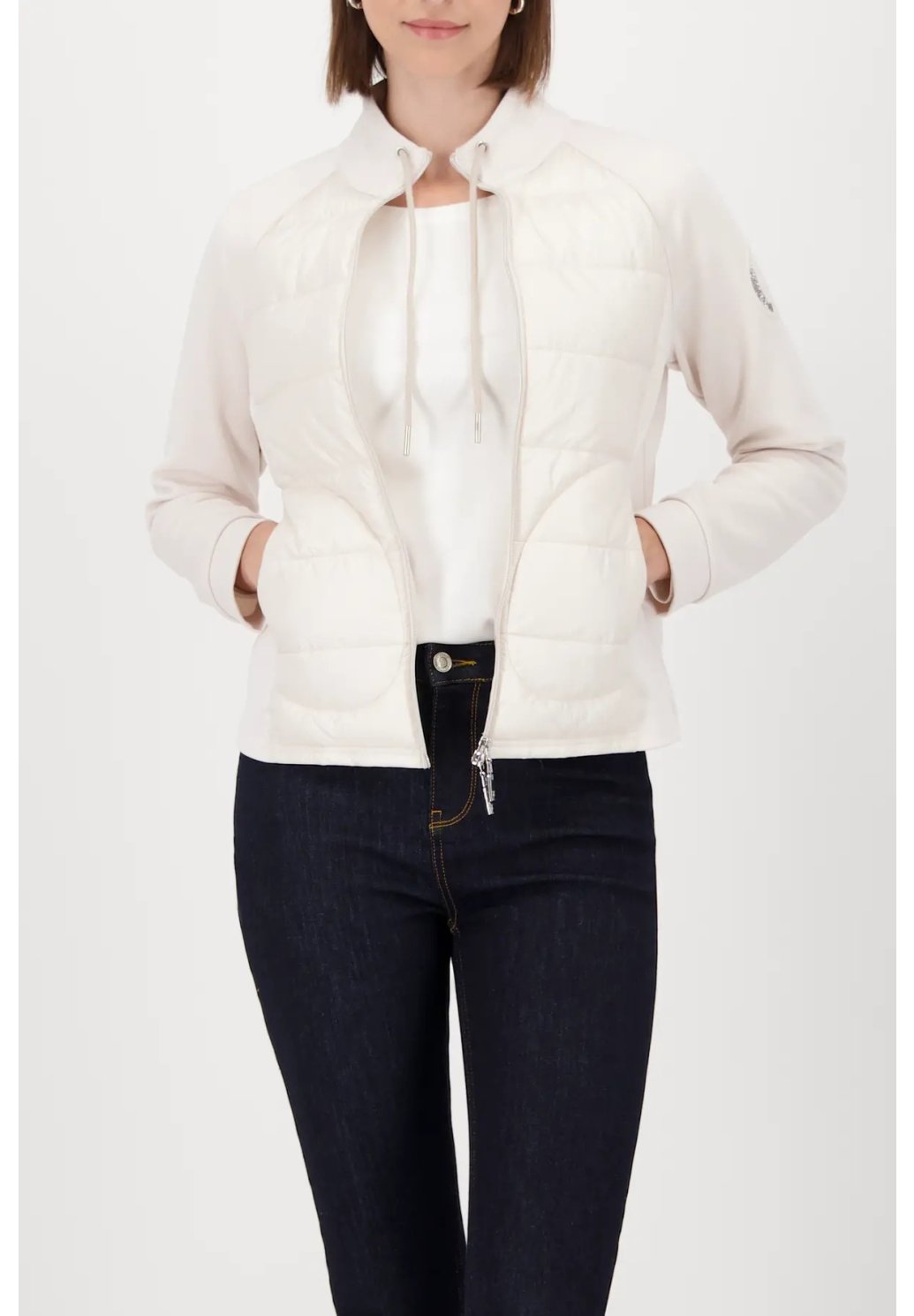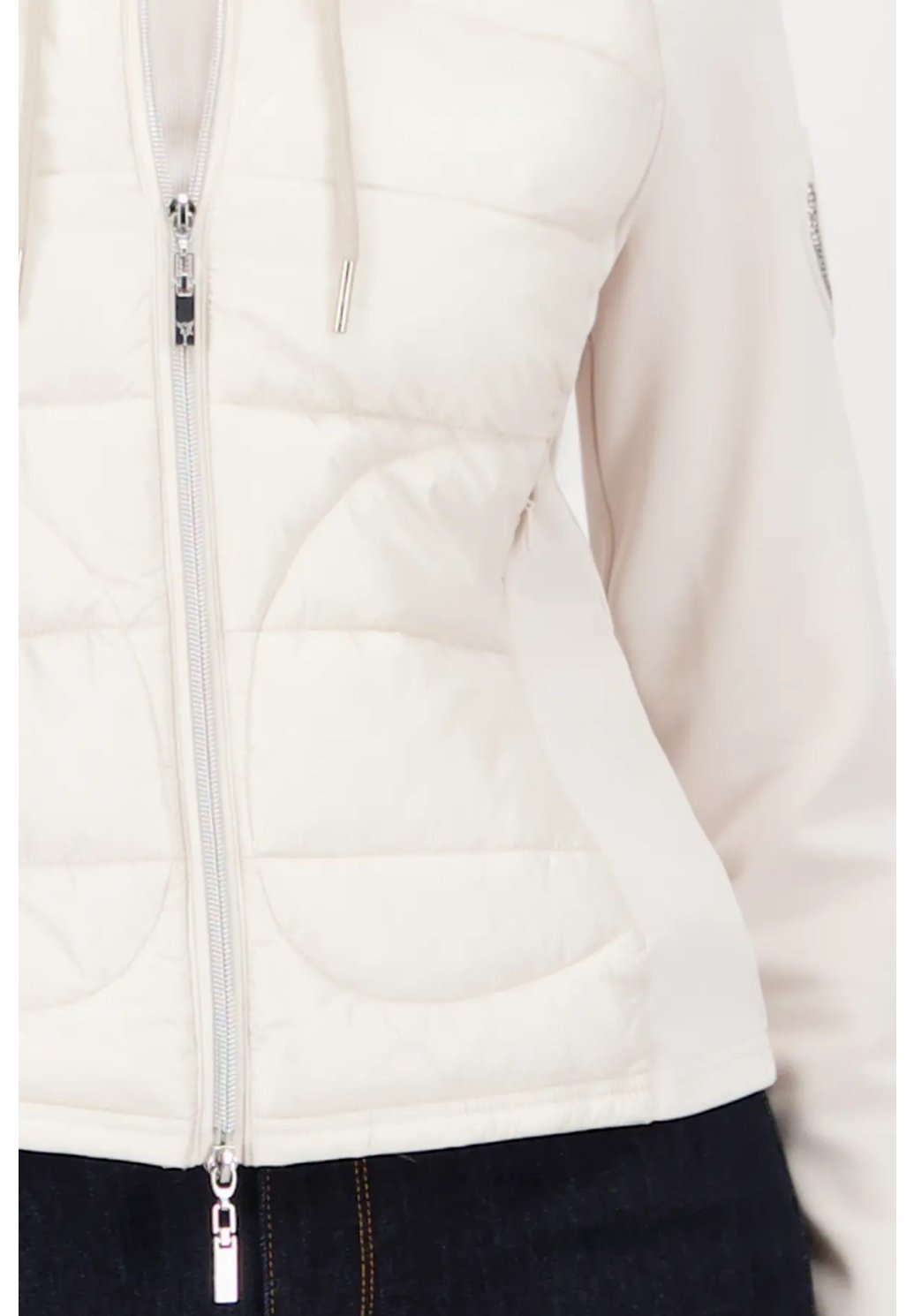 Elegantní dámská bunda v nadčasové smetanové barvě je perfektní volbou pro stylové vrstvení v chladnějších dnech. Prošívaný přední díl dodává bundě moderní vzhled, zatímco pružné rukávy a pohodlný stojáček se šňůrkou zajišťují maximální komfort při nošení. Praktické kapsy a kvalitní zipové zapínání podtrhují její funkčnost. Lehký, příjemný materiál se skvěle přizpůsobí postavě a snadno ji zkombinujete jak s džínami, tak s elegantnějšími kousky. Ideální bunda pro ženy, které chtějí spojit pohodlí s čistým, sofistikovaným stylem.
