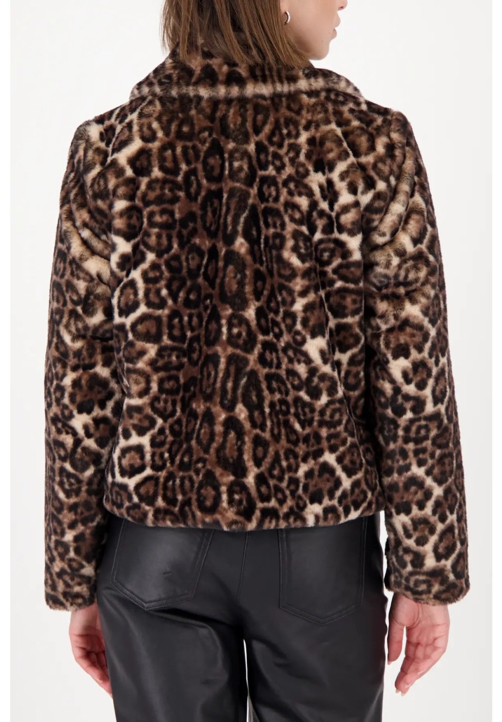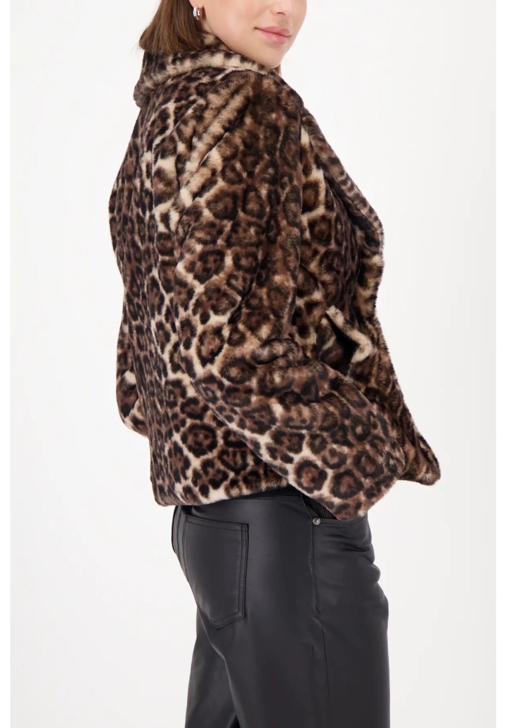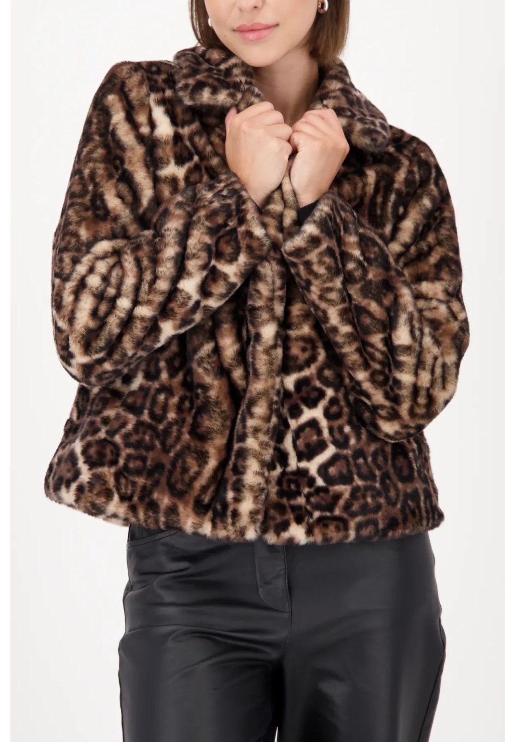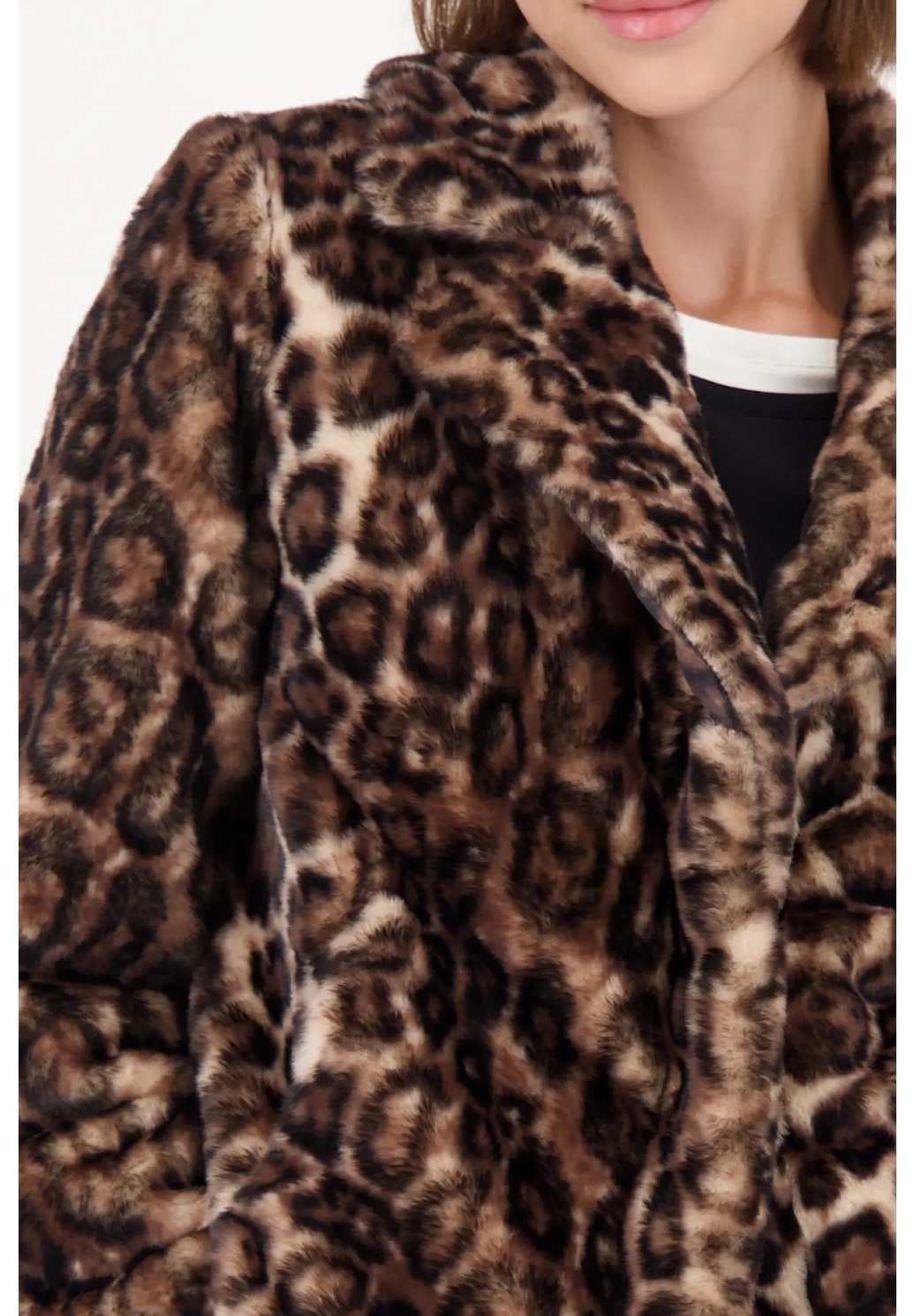 Moderní bunda z umělé kožešiny s leopardím vzorem zaujme hebkou, měkkou strukturou, elegantním klopovým límcem a praktickými bočními kapsami. Má rovný střih, dlouhé rukávy a zapínání na knoflíky, díky čemuž je výrazným a zároveň nadčasovým kouskem pro každodenní nošení i speciální příležitosti.