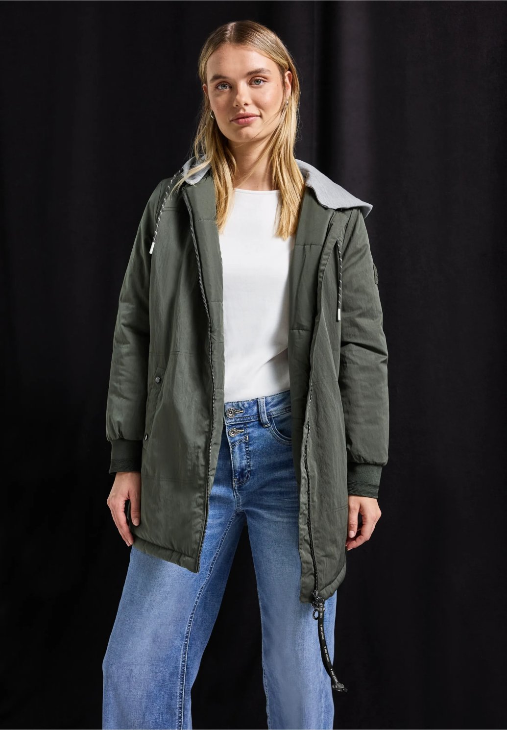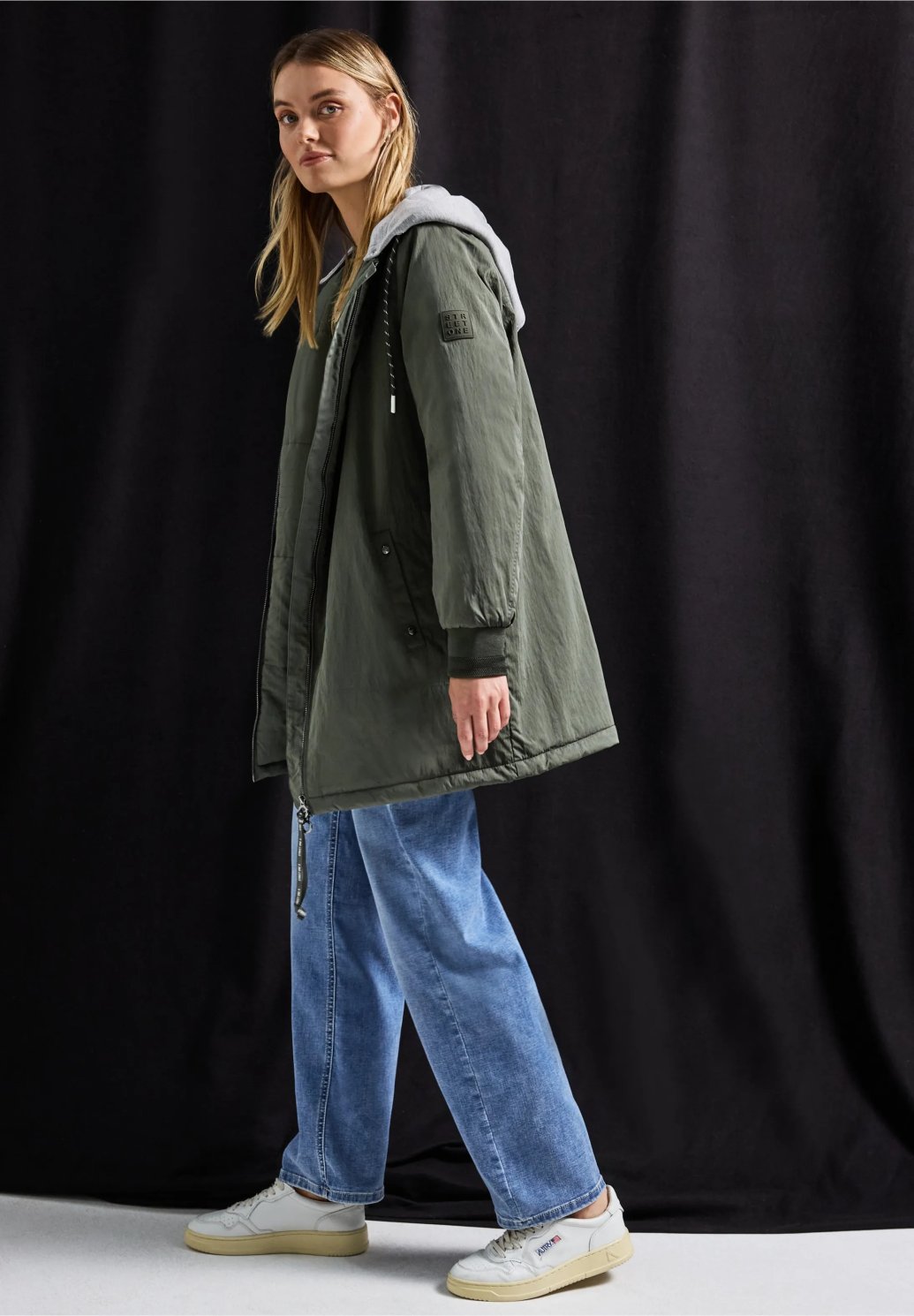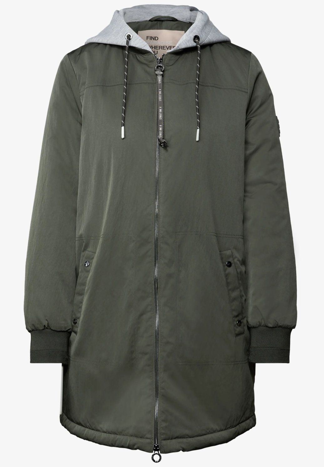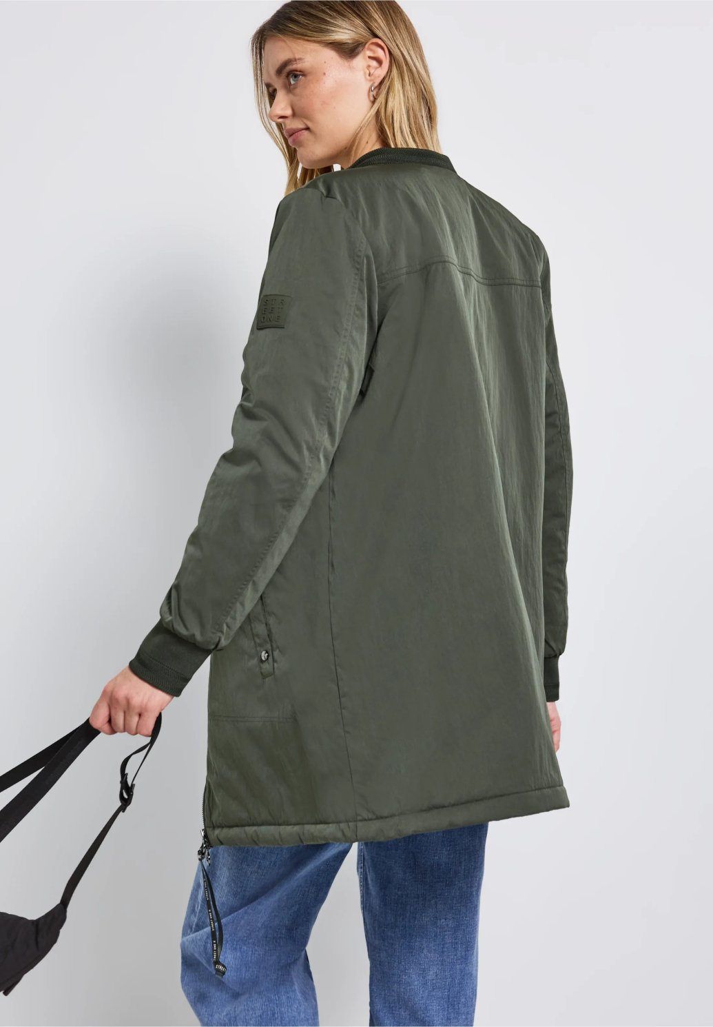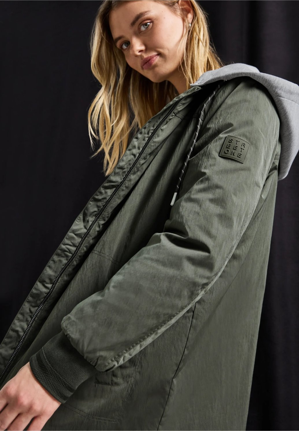 Tato dlouhá dámská bunda bluson od Street One kombinuje sportovní styl s ženskou sofistikovaností. Hedvábný lesk dodává nádech elegance, zatímco příjemně lehká podšívka zajišťuje pohodlí v chladných dnech. Praktické: Kapuce je odnímatelná a boční kapsy nabízejí prostor pro drobnosti.