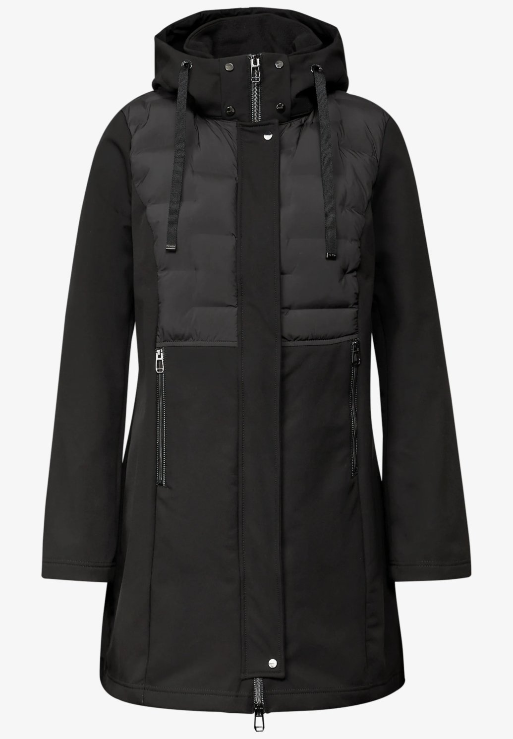 Tato dámská softshellová bunda od Street One se pyšní funkčními detaily a módní kombinací materiálů. Kapuce se stahovací šňůrkou chrání před větrem a nepřízní počasí, zatímco skrytý zip a kapsy na zip vytvářejí čistý design. Sportovní a všestranná bunda s pohodlným pocitem – ideální pro každodenní nošení.