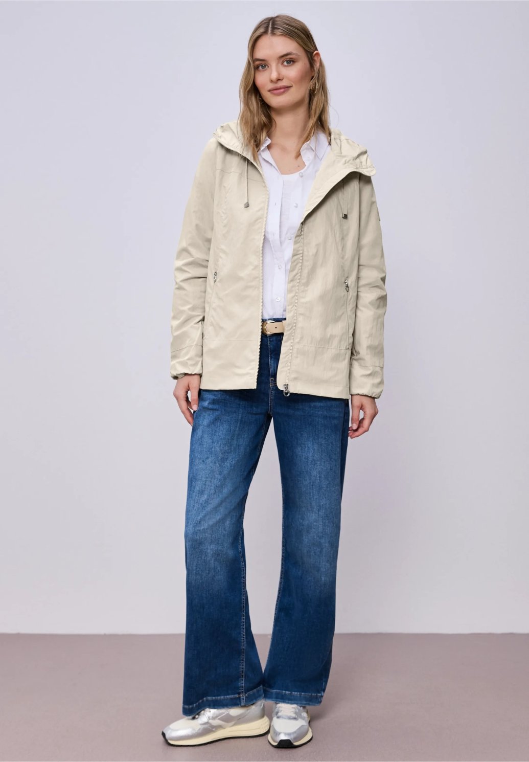 Tato moderní dámská větrovka od Street One je vaším lehkým společníkem na outdoorové aktivity se sportovním nádechem. Zip po celé délce dodává bundě čistý vzhled, zatímco kapuce se stahovací šňůrkou umožňuje praktické nastavení. Boční kapsy nabízejí prostor pro drobnosti a doplňují funkční design. Ideální volba pro větrné dny a ležérní volnočasové styly.
