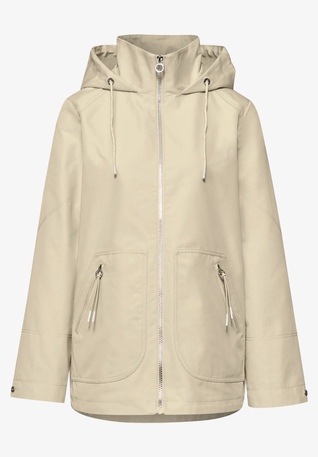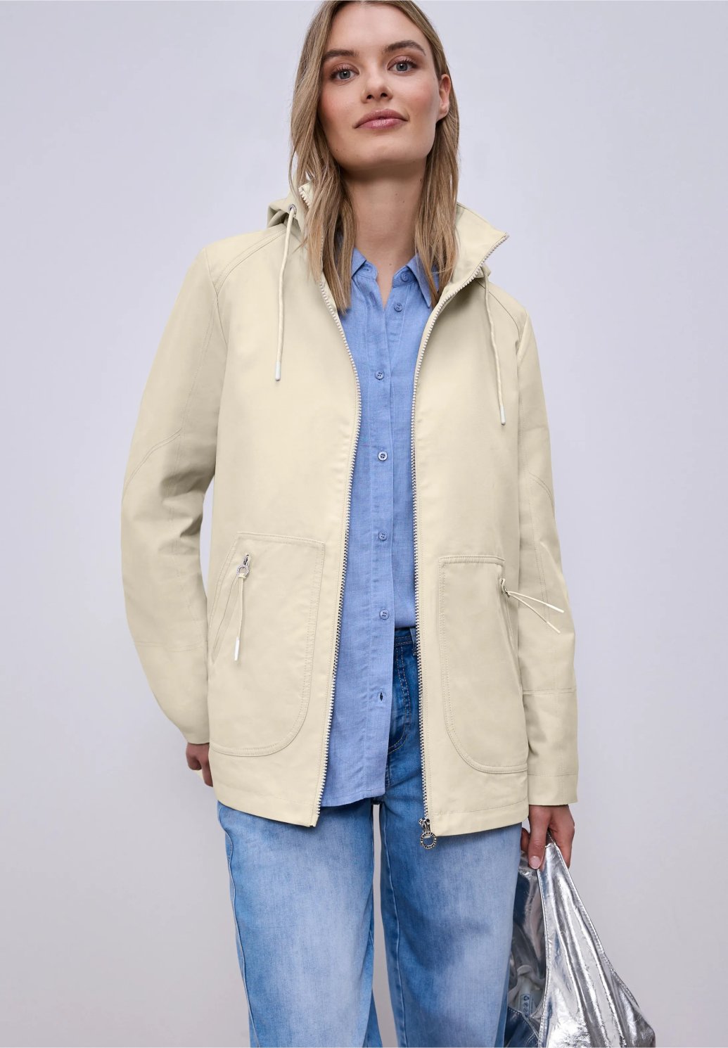 Tato parka od Street One, vyrobená z keprové tkaniny, nabízí moderní, ležérní styl s kapucí, zapínáním na zip, bočními kapsami na zip a nýtovými detaily na rukávech – zároveň je výrazná a ženská. Hranatý lem s bočními rozparky, kapuce se stahovací šňůrkou a pohodlná bavlněná směs doplňují vzhled s praktickou všestranností. Tato parka s dlouhým rukávem a čistým designem vás stylově provede po celou sezónu.