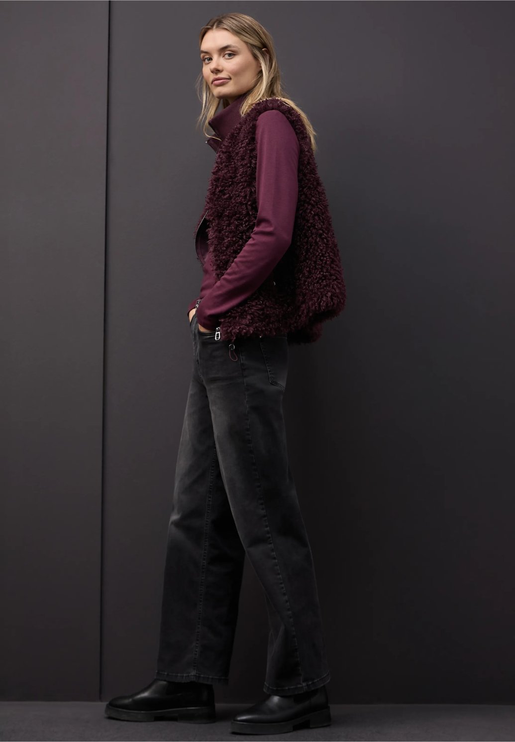 Tato dámská vesta z umělé kožešiny od Street One kombinuje útulný vzhled s moderními detaily. Pletený stojáček a stahovací lem zajišťují individuální střih, zatímco měkká textura připomínající kožešinu stylově doplňuje váš vzhled. Boční kapsy dělají z vesty praktického a módního společníka v chladnějších dnech.
