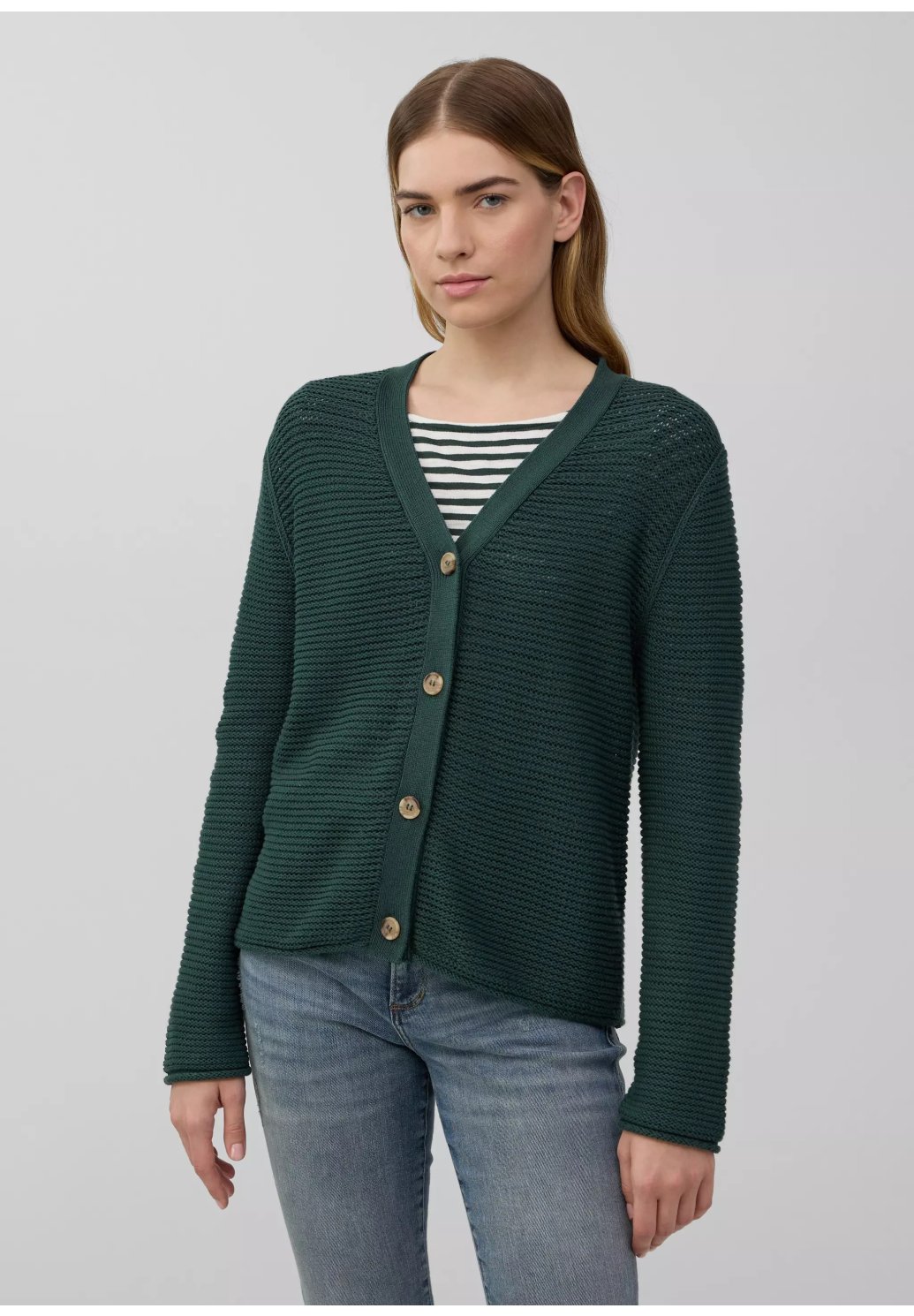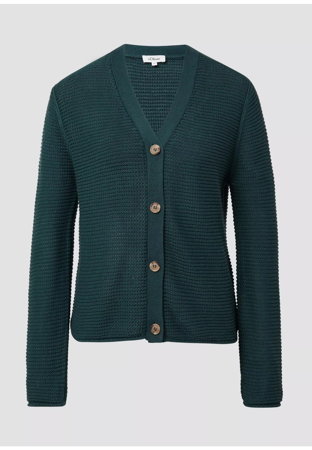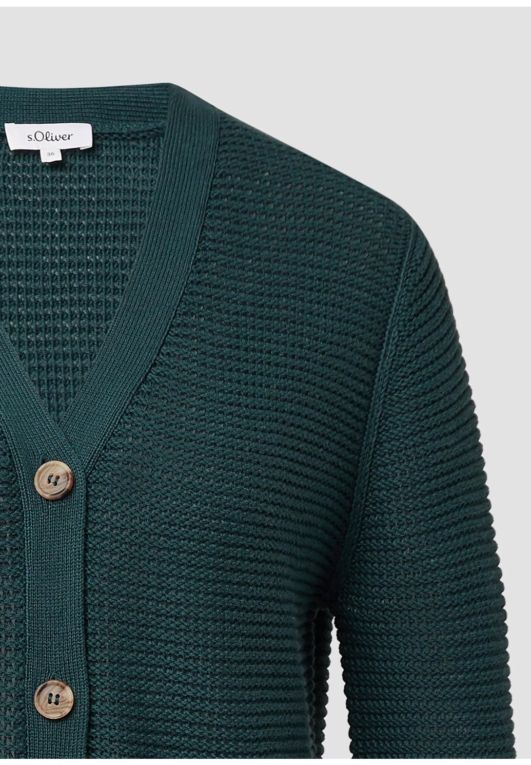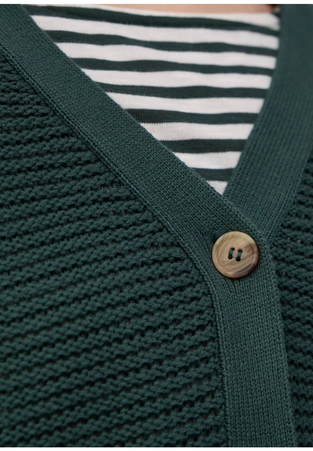 Tento vzdušný, měkký kardigan nadčasového regular střihu vás okouzlí elegantním výstřihem do V a ozdobným žebrovaným vzorem. Zapínání na knoflíky z něj dělá dokonalého společníka pro volné chvíle.