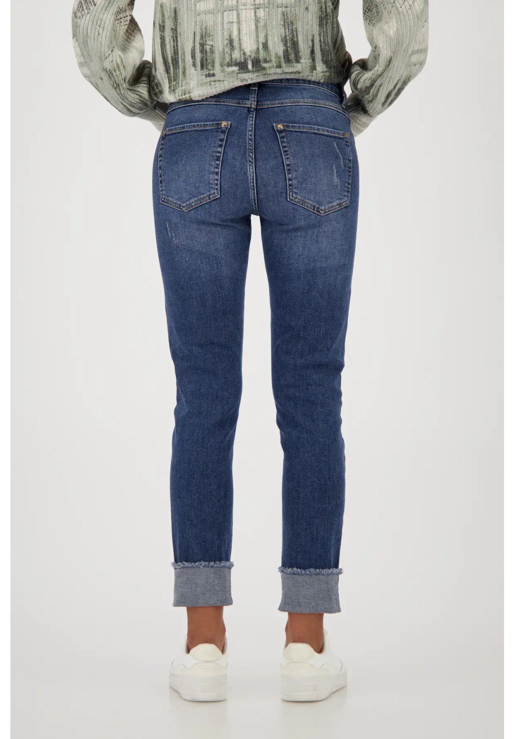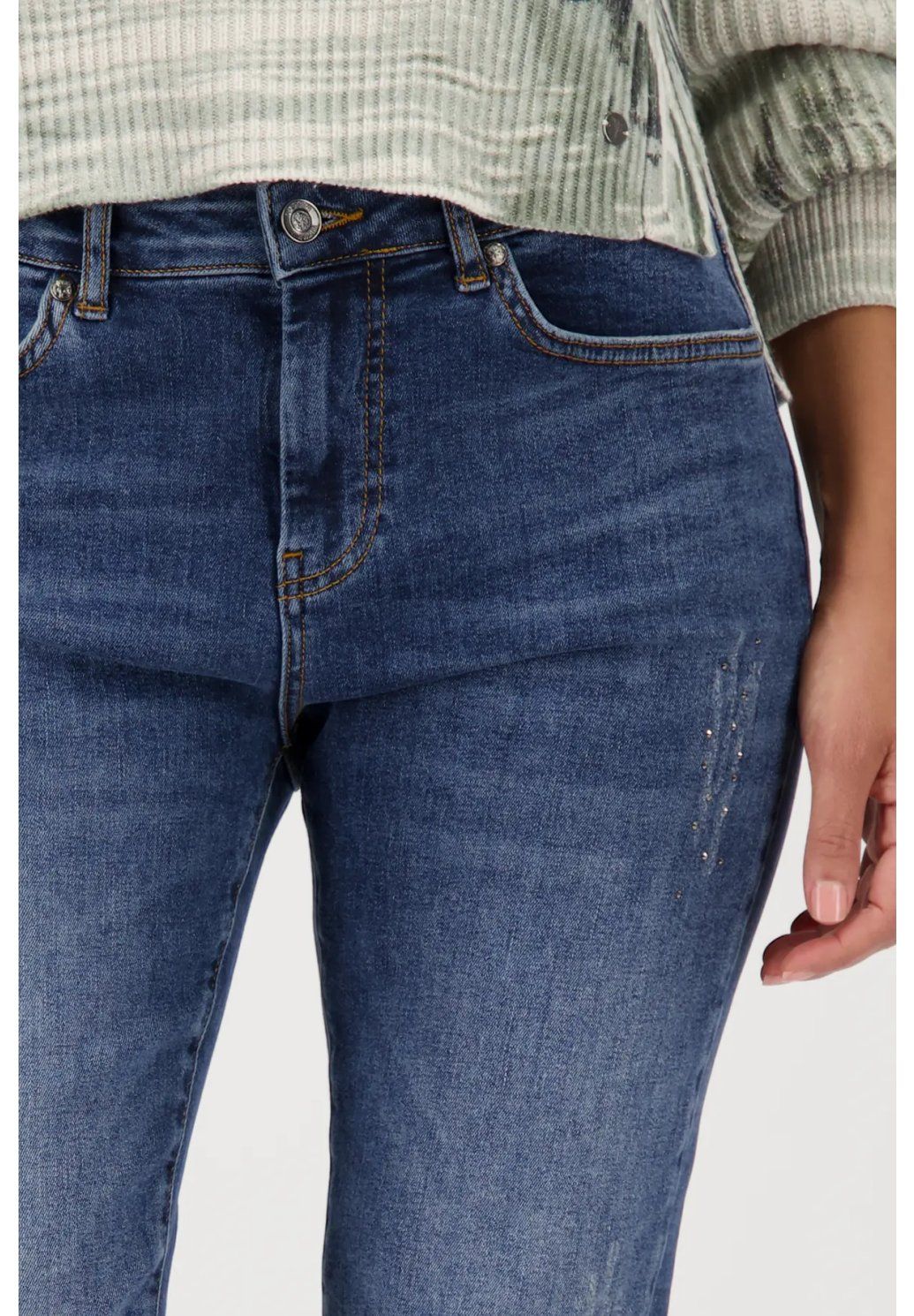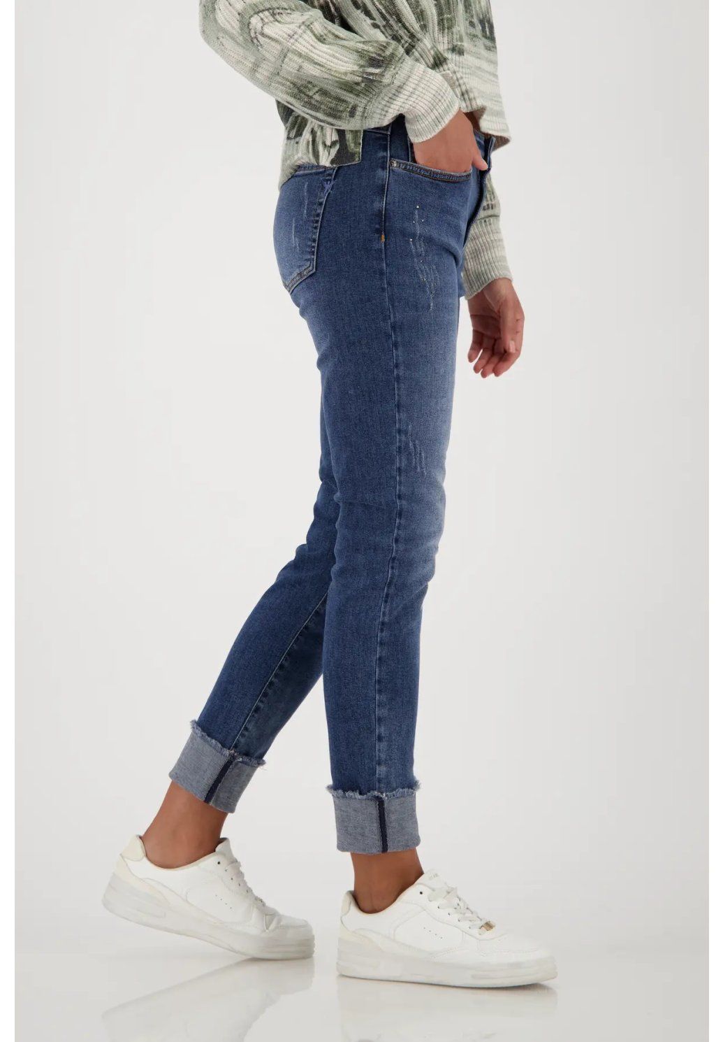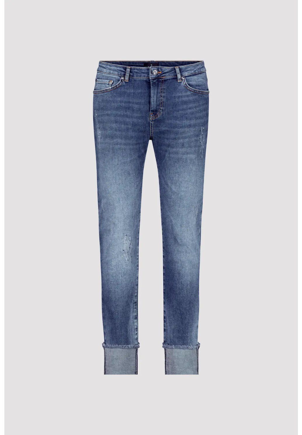 Dámské džíny v klasickém modrém denimovém odstínu jsou skvělou volbou pro každodenní nošení. Přiléhavější střih krásně zvýrazní postavu, zatímco ohrnuté nohavice s jemně roztřepeným lemem dodávají modelu moderní a ležérní vzhled. Jemné vyšisování a drobné ozdobné detaily podtrhují stylový charakter džínů, které snadno zkombinujete s tričkem, halenkou i svetrem. Pohodlný a nadčasový kousek do města, do práce i na volný čas.