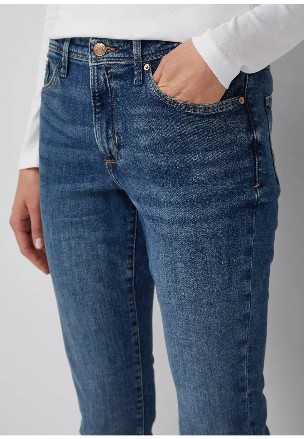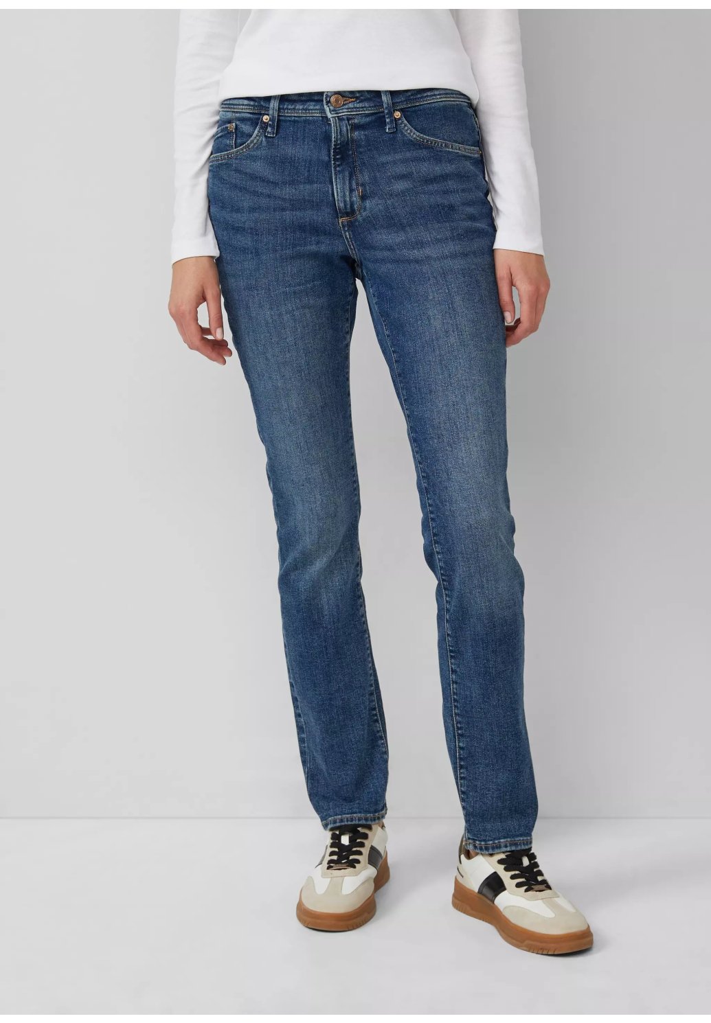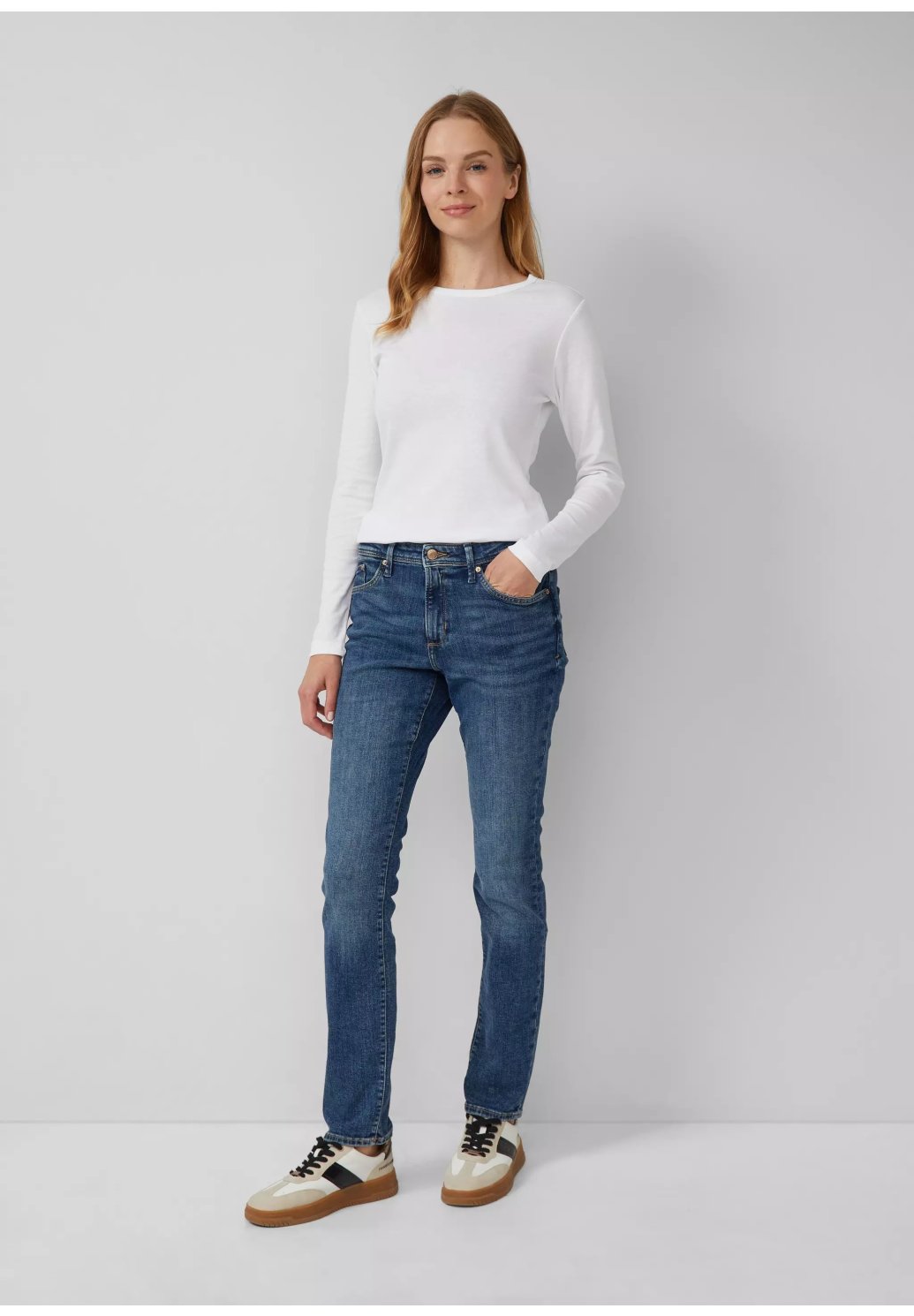 Objevte džíny Betsy: perfektní slim fit džíny pro každodenní nošení. Díky pohodlnému středně vysokému pasu a klasickému designu s pěti kapsami dokonale zapadnou do vašeho života. Nadčasový společník v regularní délce pro uvolněné chvíle.
