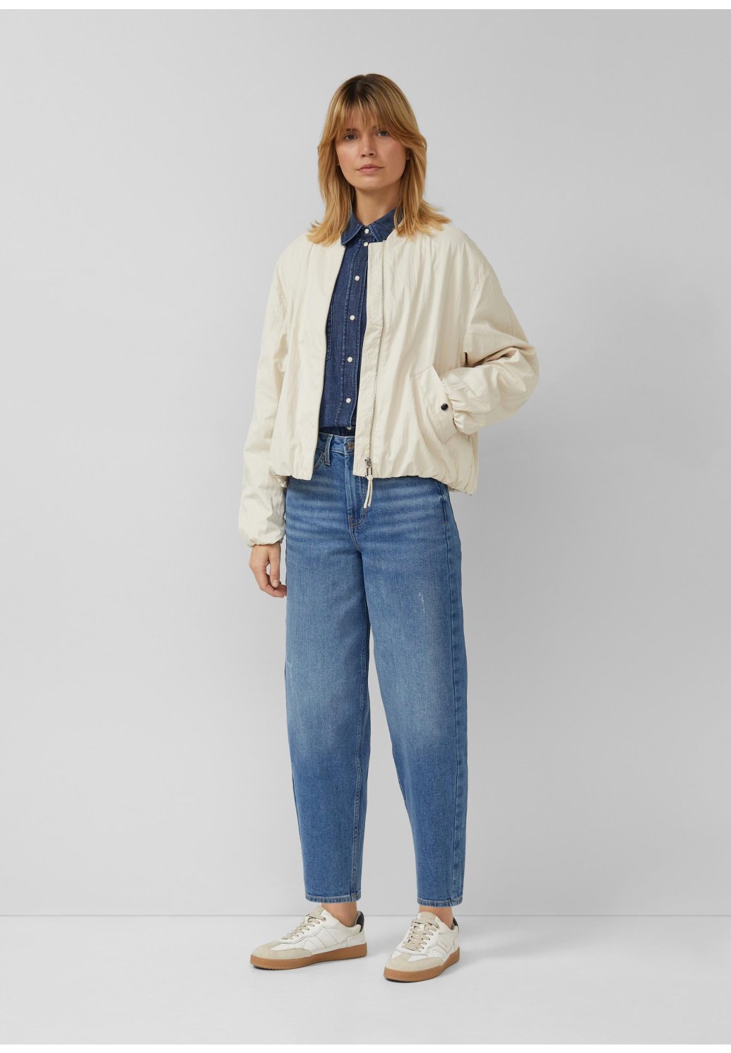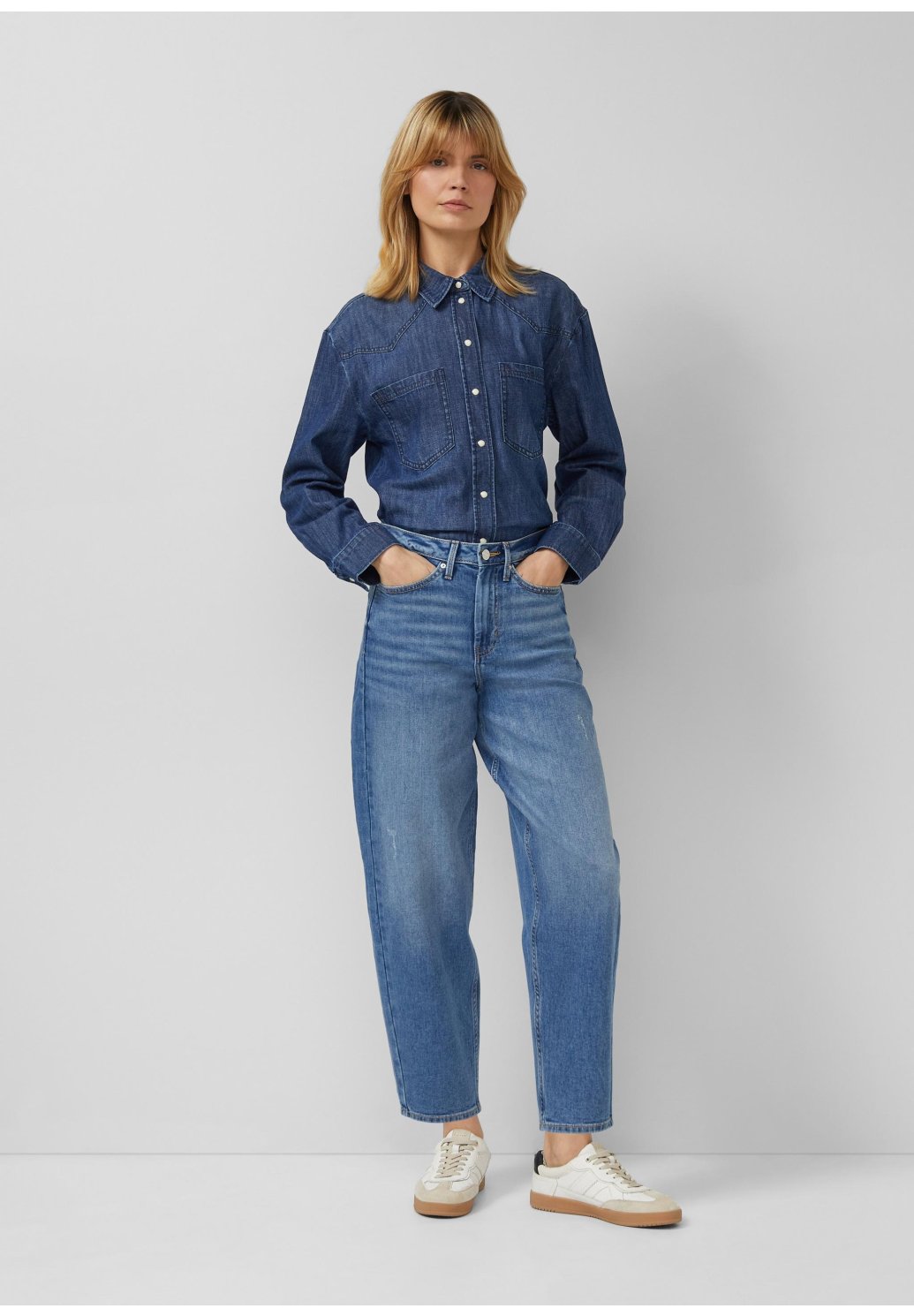 Dámské džíny v moderním modrém odstínu zaujmou pohodlným volnějším střihem a nadčasovým designem. Mají vyšší pas a rovné, lehce zúžené nohavice, které lichotí postavě a zároveň zajišťují maximální komfort při nošení. Kvalitní denimový materiál je příjemný na dotek a dobře drží tvar. Džíny snadno zkombinujete s košilí, tričkem i svetrem – ideální kousek pro každodenní nošení do práce, města i na volný čas.