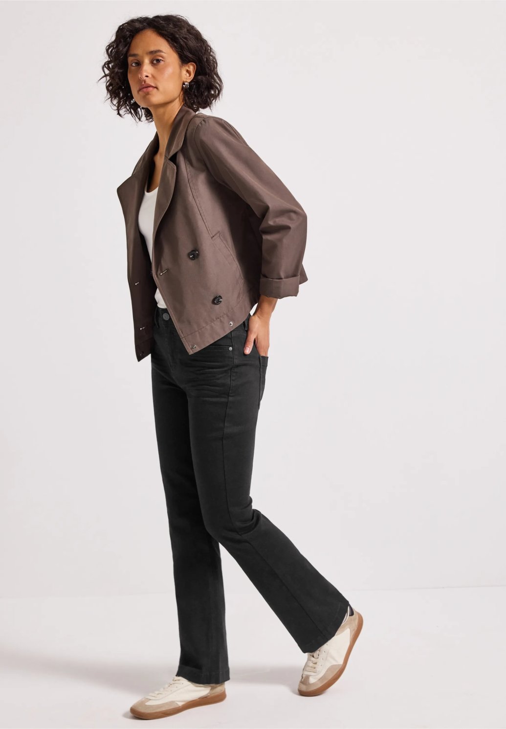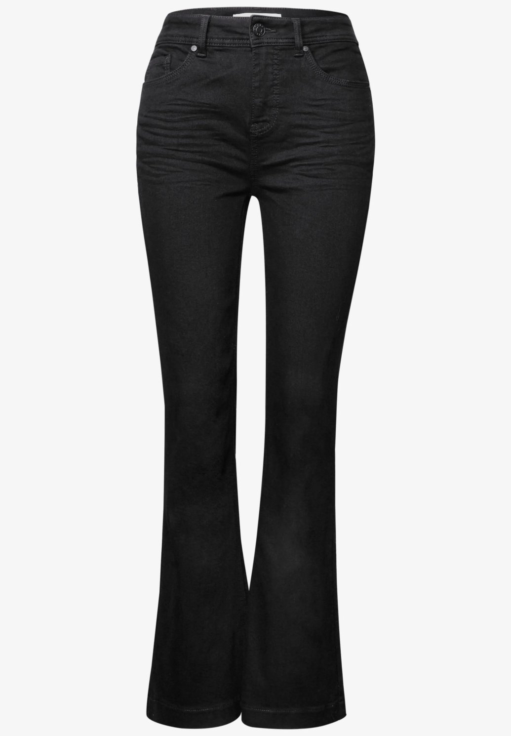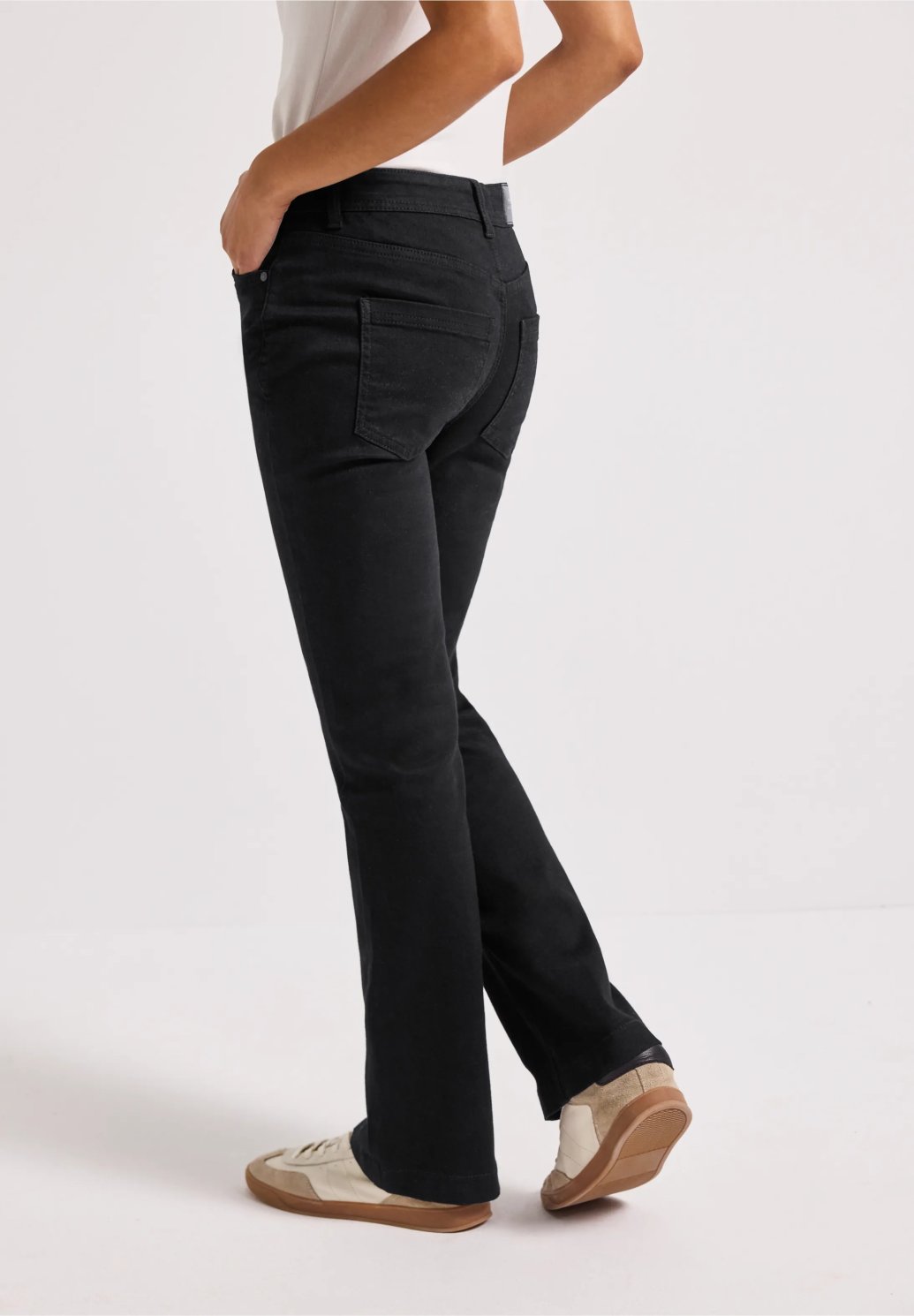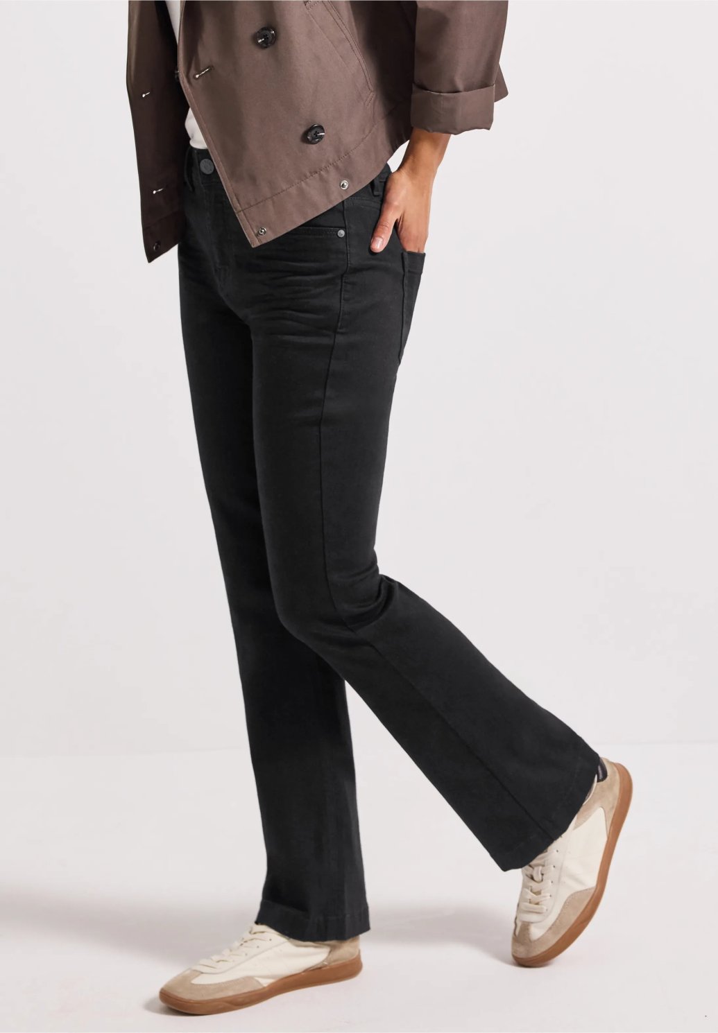 Tyto džíny s úzkým střihem od značky Street One pro ženy v černé barvě zdůrazňují ženskou siluetu díky svému úzkému střihu a vysokému pasu. Nohavice s úzkým střihem dodávají módní vzhled a jsou všestranné. Pružná bavlněná směs zaručuje pohodlné nošení – ideální pro elegantní i ležérní outfity.