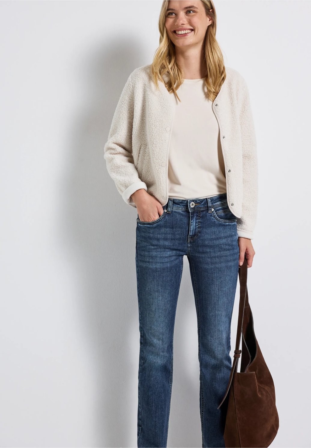 Tyto džíny od značky Street One pro ženy kombinují přiléhavý slim střih s módními nohavicemi s rozšířením u kotníků. Modré praní vytváří klasický džínový vzhled, zatímco směs bavlny se strečem zajišťuje vysokou úroveň pohodlí. Středně vysoký pas a 5 kapes dělají z těchto džín všestranný kousek pro každodenní život.