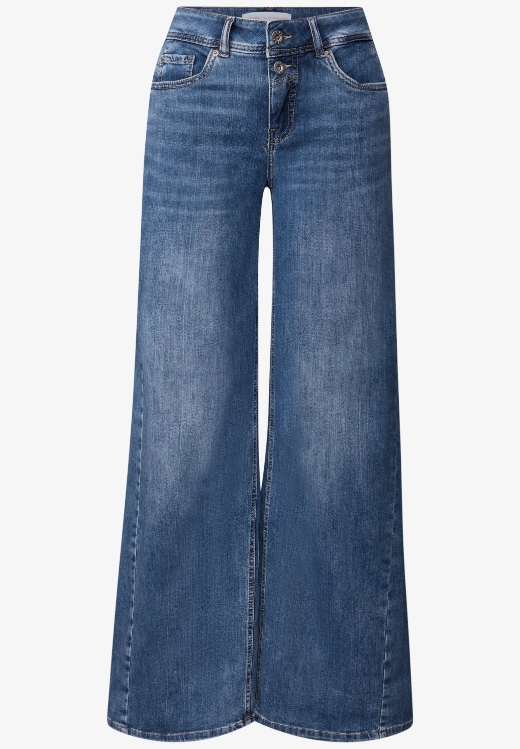 Tyto dámské džíny Palazzo od Street One vdechnou vašemu šatníku nový život. Vysoký pas a široké nohavice vytvářejí ženskou siluetu a pohodlný, volný střih. Světle modrá barva dodává denimu lehký letní vzhled – ideální pro stylové ležérní outfity.