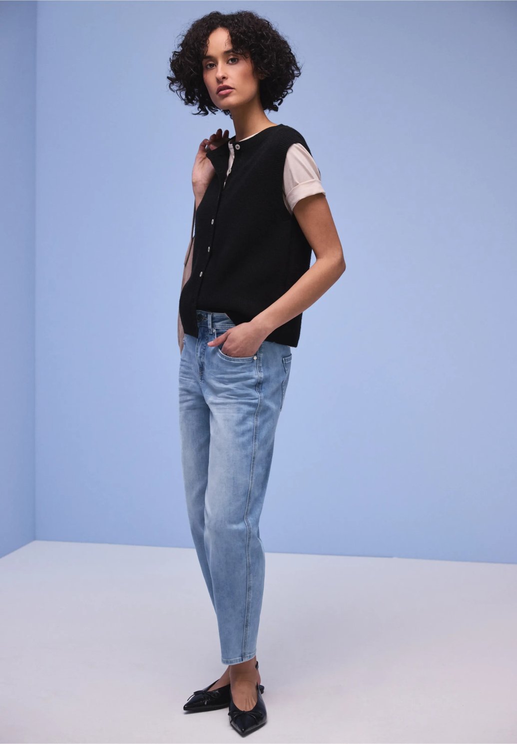 Světle modré dámské džíny s širokými nohavicemi od Street One ve stylu Karlie dodají vašemu džínovému vzhledu svěží nádech. Díky volnému střihu, vysokému pasu a klasickému 5kapsovému střihu jsou pohodlné i módní. Bavlněná směs s přidanou strečovou úpravou zaručuje volnost pohybu a pohodlí.