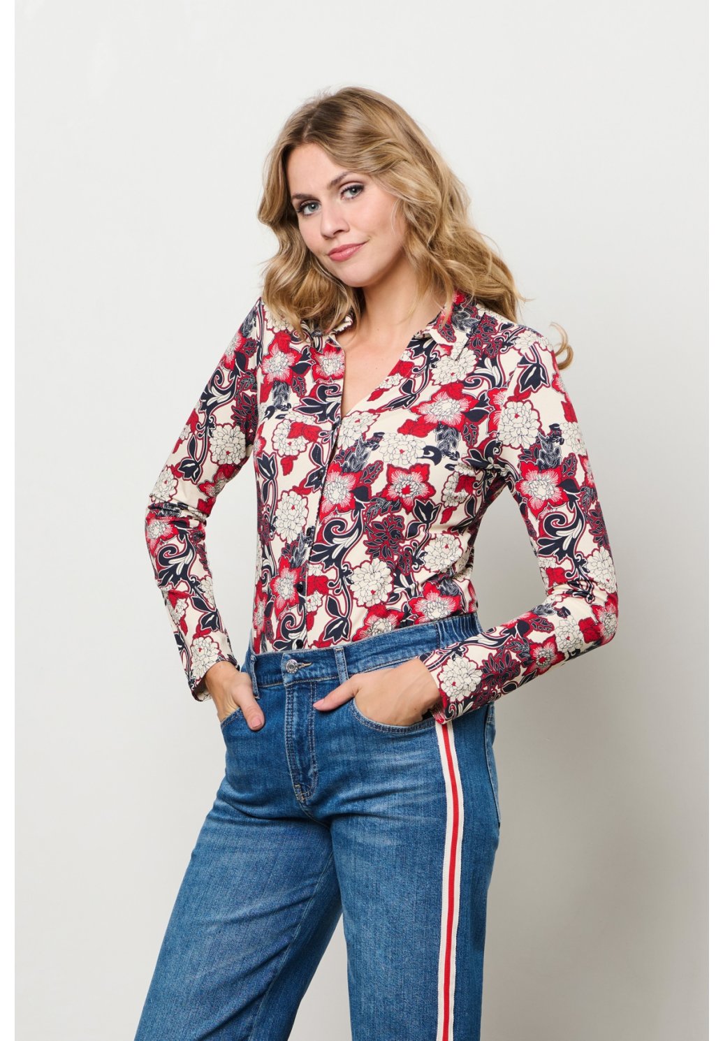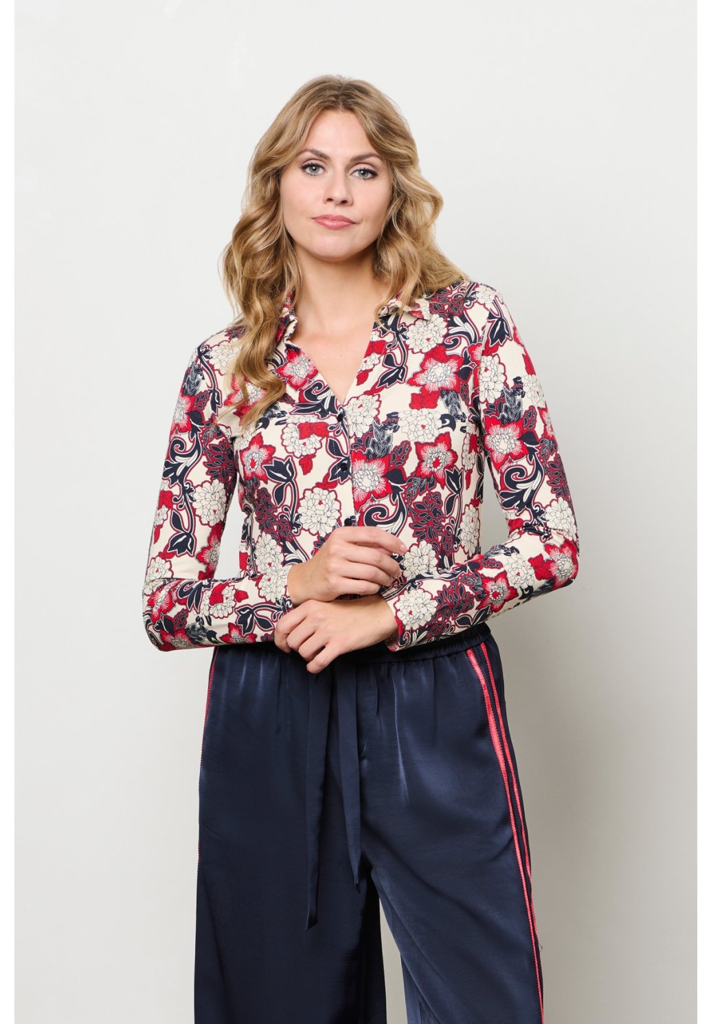 Elegantní halenka značky & Co je vyrobena z příjemného žerzejového materiálu, který zajišťuje komfort po celý den. Výstřih do V s knoflíkovým zapínáním působí ženským a nadčasovým dojmem, zatímco límeček se stojáčkem dodává modelu sofistikovaný vzhled. Dlouhé rukávy činí halenku ideální volbou pro každodenní nošení i formálnější příležitosti.