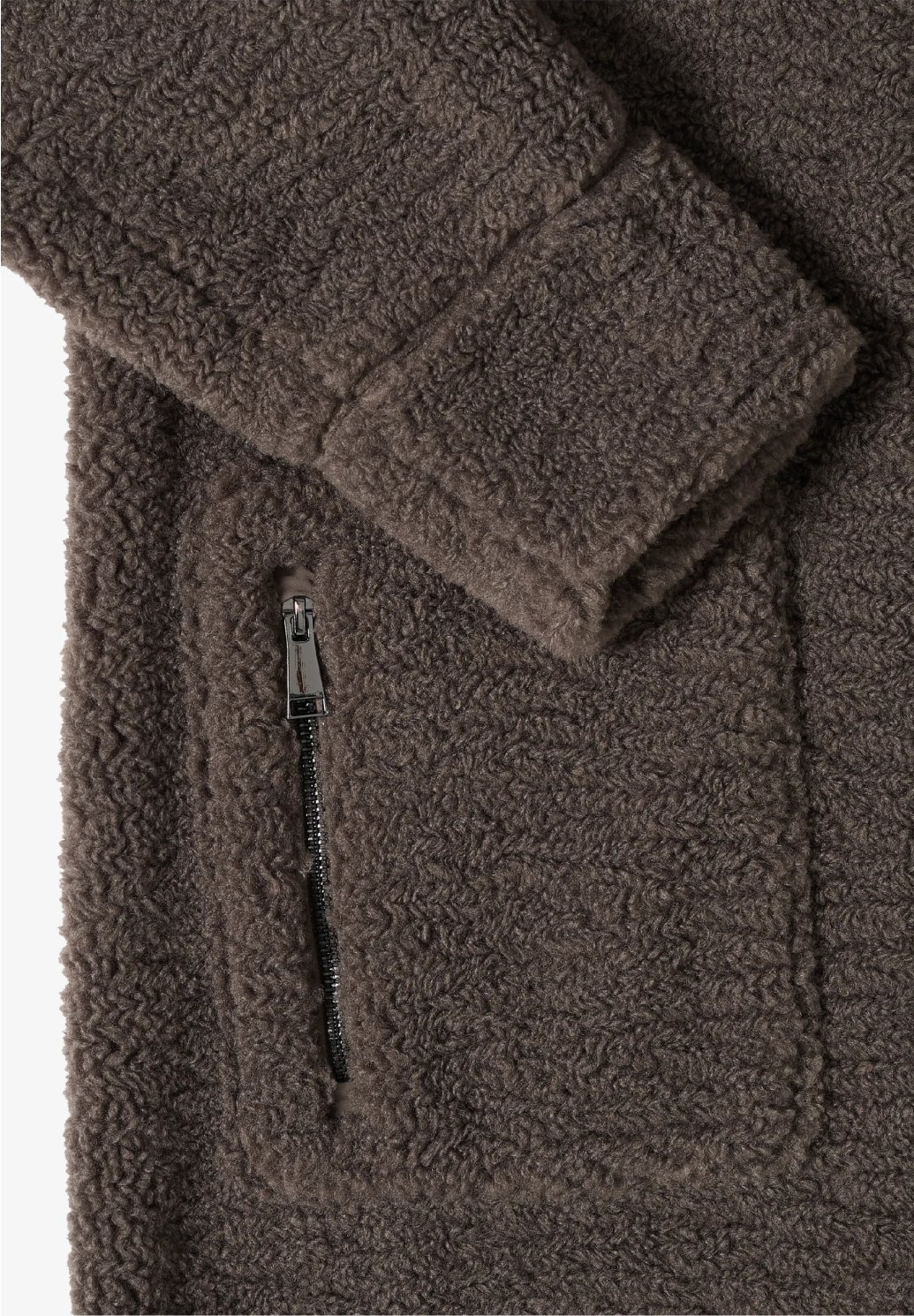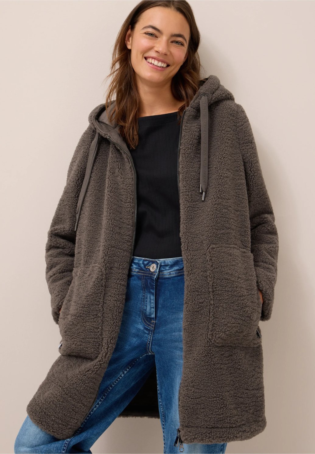 Tento útulný plyšový kabát od značky CECIL pro ženy je skutečným kouskem oblečení pro chladné dny. Měkká a lehká plyšová tkanina zajišťuje příjemné pohodlí, zatímco kapuce se stahovací šňůrkou a nakládané kapsy na zip nabízejí funkční detaily. Dvoucestný zip dotváří celkový vzhled a činí kabát obzvláště praktickým.
