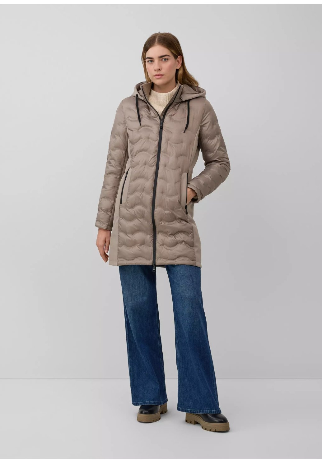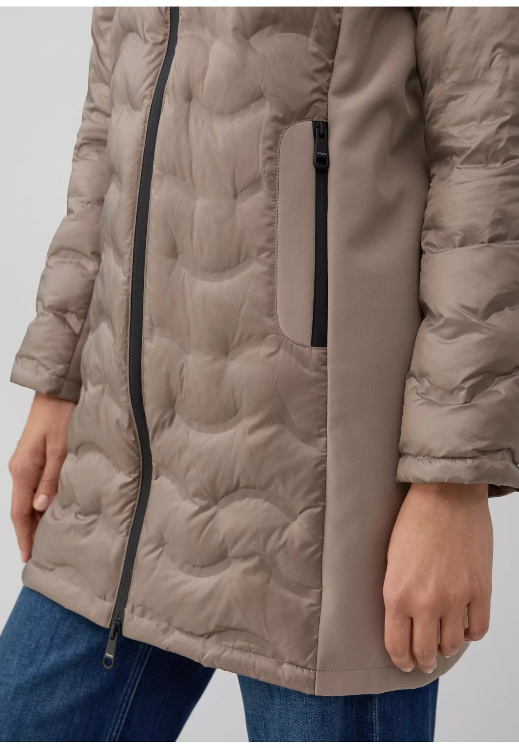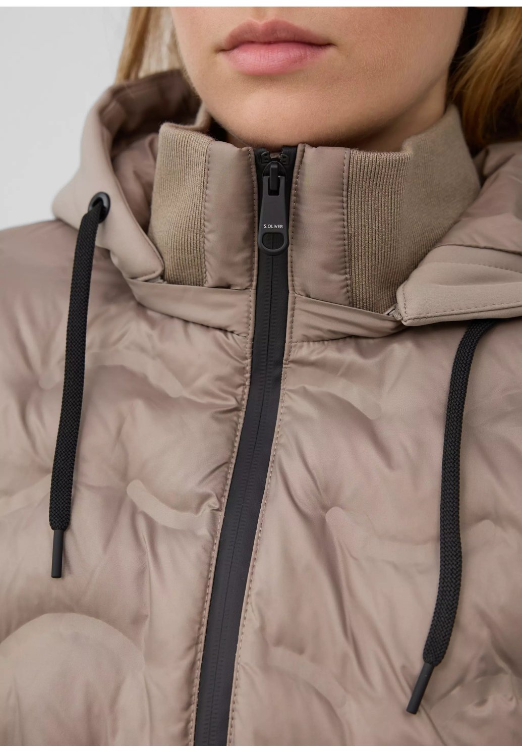 Stylová outdoorová bunda se slim fit střihem, která spojuje funkčnost a moderní vzhled. Vyrobena z kvalitní tkané softshellové látky s lehkým polstrováním pro teplo a pohodlí i v chladnějším počasí. Má dvoucestný zip a stojáček, který chrání před větrem. Odepínací kapuce s nastavitelnou šňůrkou umožní přizpůsobit bundu aktuálním podmínkám. Praktické vnitřní kapsy a kapsy na zip uschovají vše potřebné. Díky lehkému provedení a embosovanému povrchu se skvěle hodí na outdoorové aktivity i každodenní nošení.