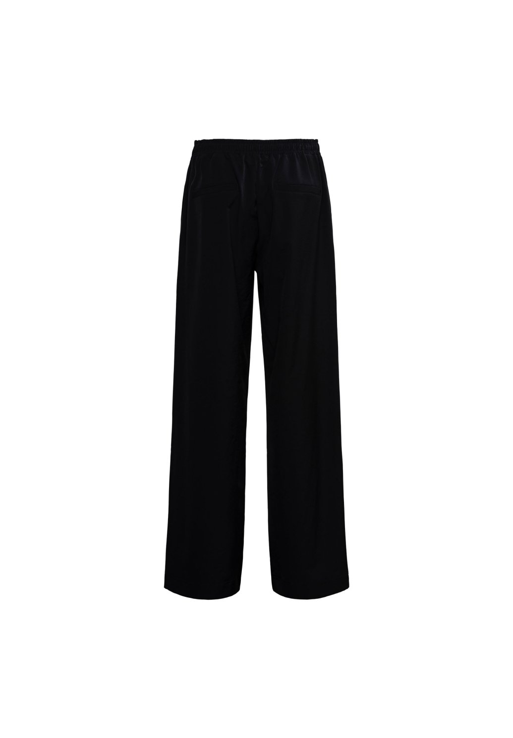 Tyto basic kalhoty jsou vyrobeny z kvalitního cestovního materiálu, který je pohodlný, praktický a ideální pro každodenní nošení i cestování. Pas s pružnou gumou a stahovací šňůrkou zajišťuje maximální komfort a přizpůsobení postavě. Kalhoty mají přední boční kapsy a zadní výpustkovou kapsu. Rovný střih nohavic vytváří nadčasovou siluetu a umožňuje snadné kombinování s různými typy vršků.