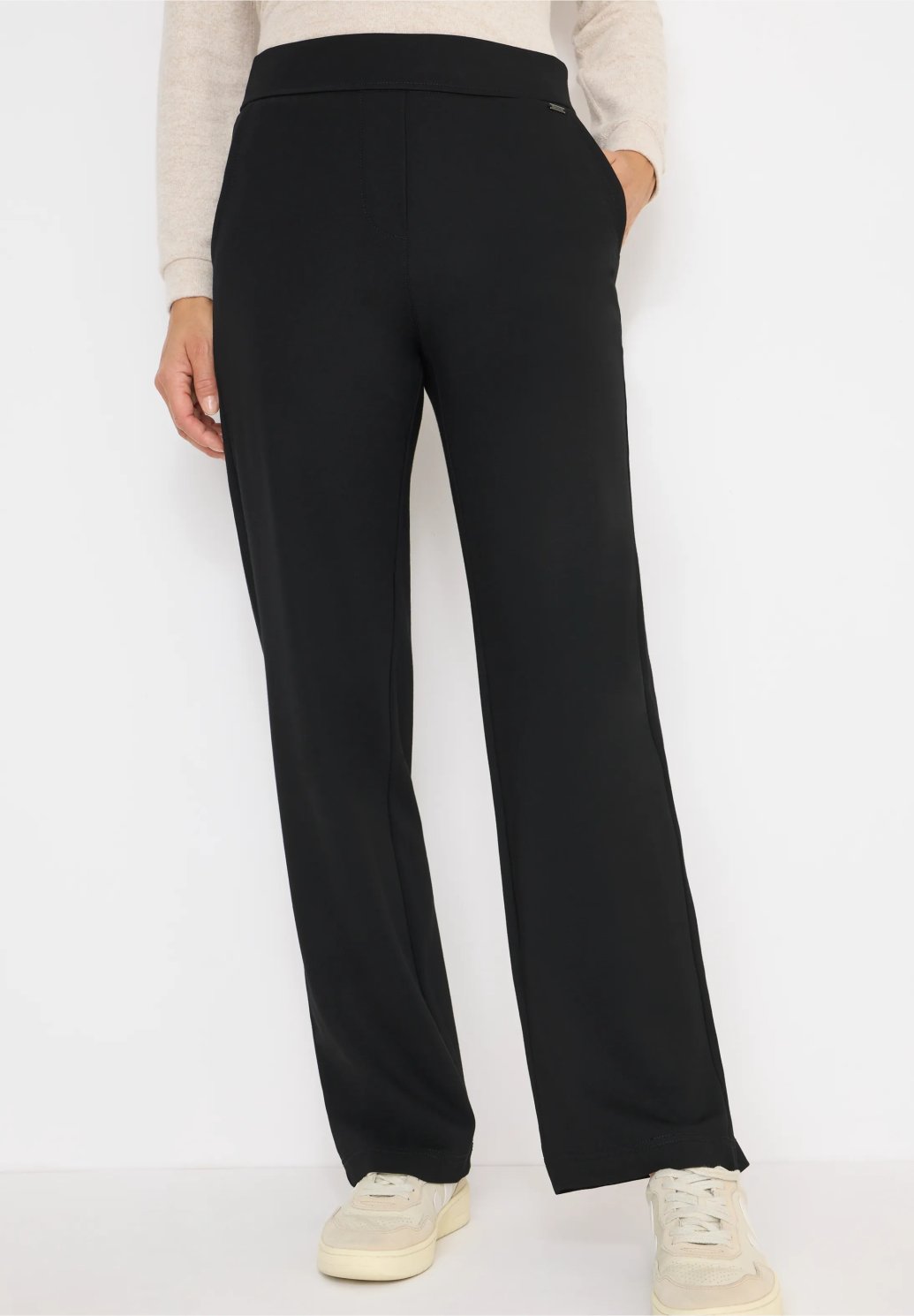Dámské kalhoty CECIL Neele jsou vyrobeny z pohodlného žerzejového materiálu a nabízejí pohodlný střih s volnými nohavicemi s vysokým pasem a rovným střihem. Elastický pas a boční kapsy je činí obzvláště pohodlnými – ideální pro ležérní každodenní outfity.