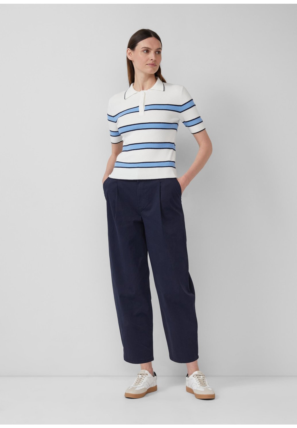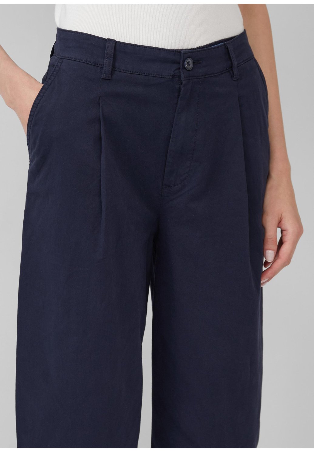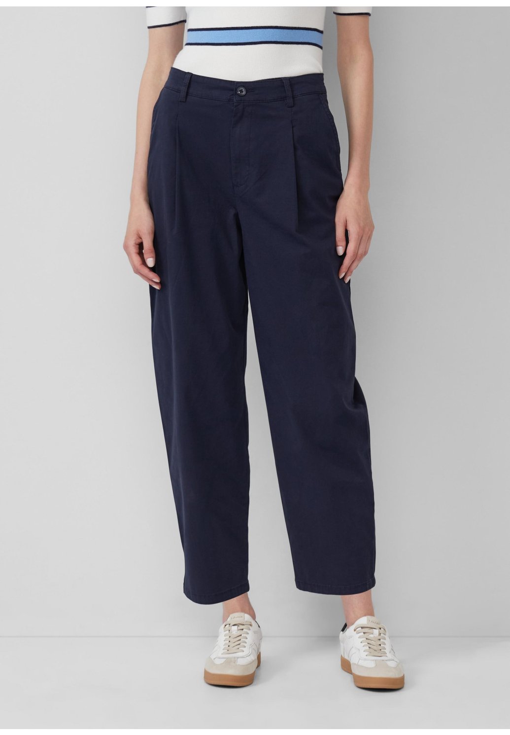 Tyto ležérní kalhoty s vysokým sedem a soudkovitými nohavicemi si vás získají díky pohodlné elastické bavlně a délce crop. Díky elastickému pasu a uvolněnému střihu vás stylově provedou celým dnem - včetně praktických kapes s rozparkem.