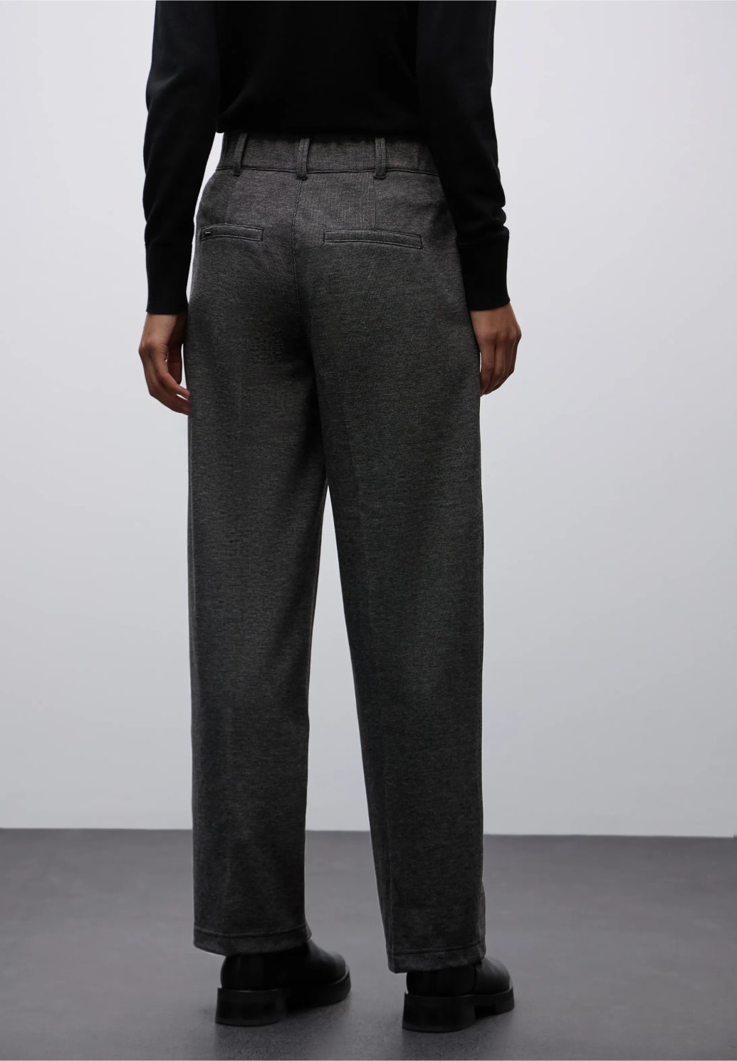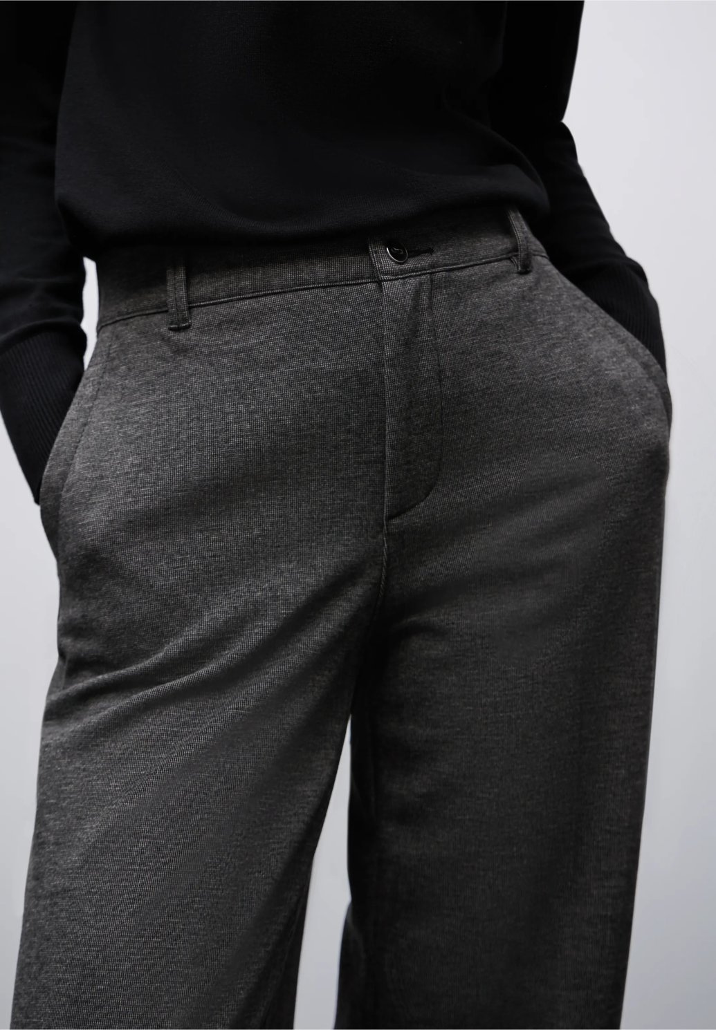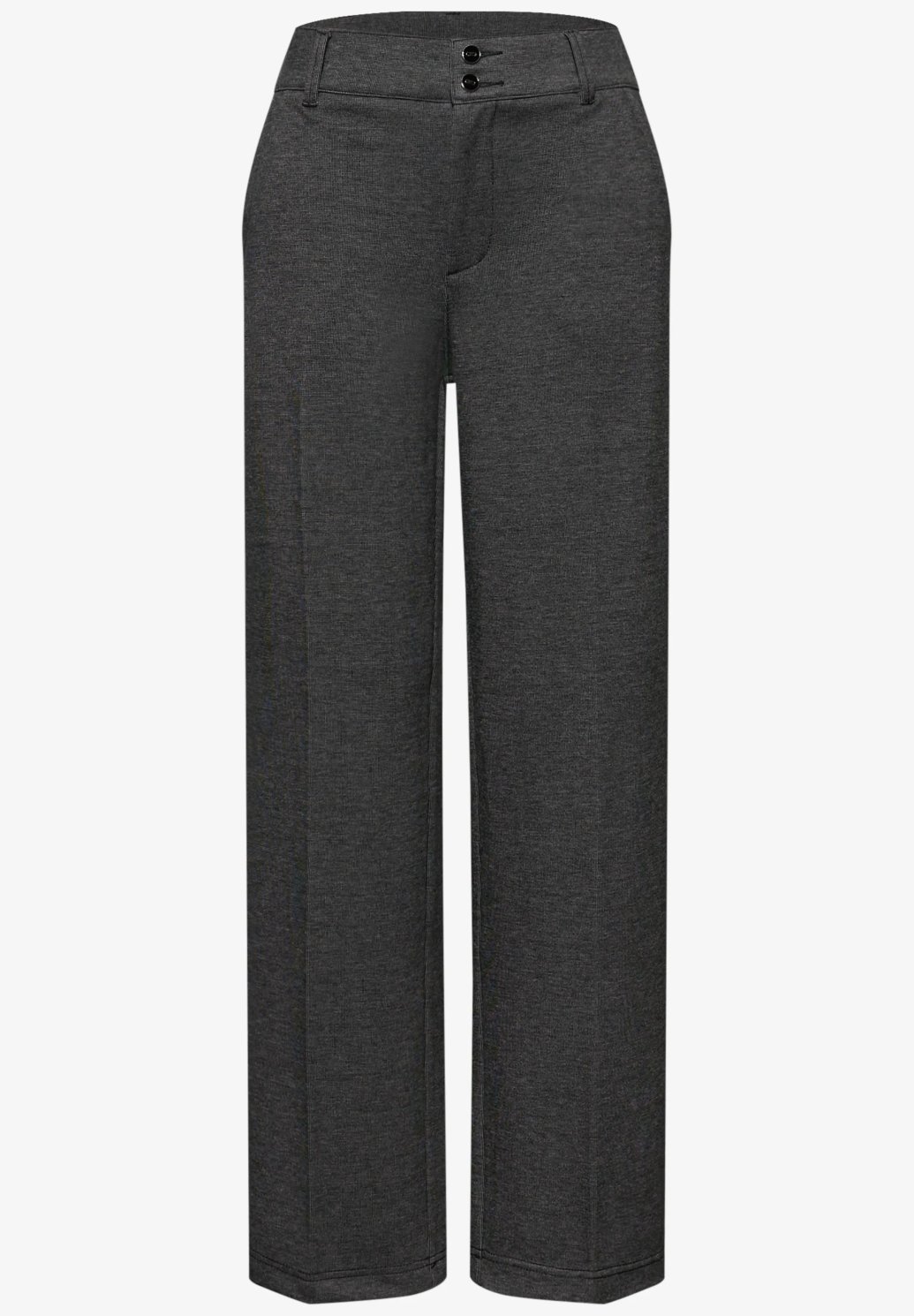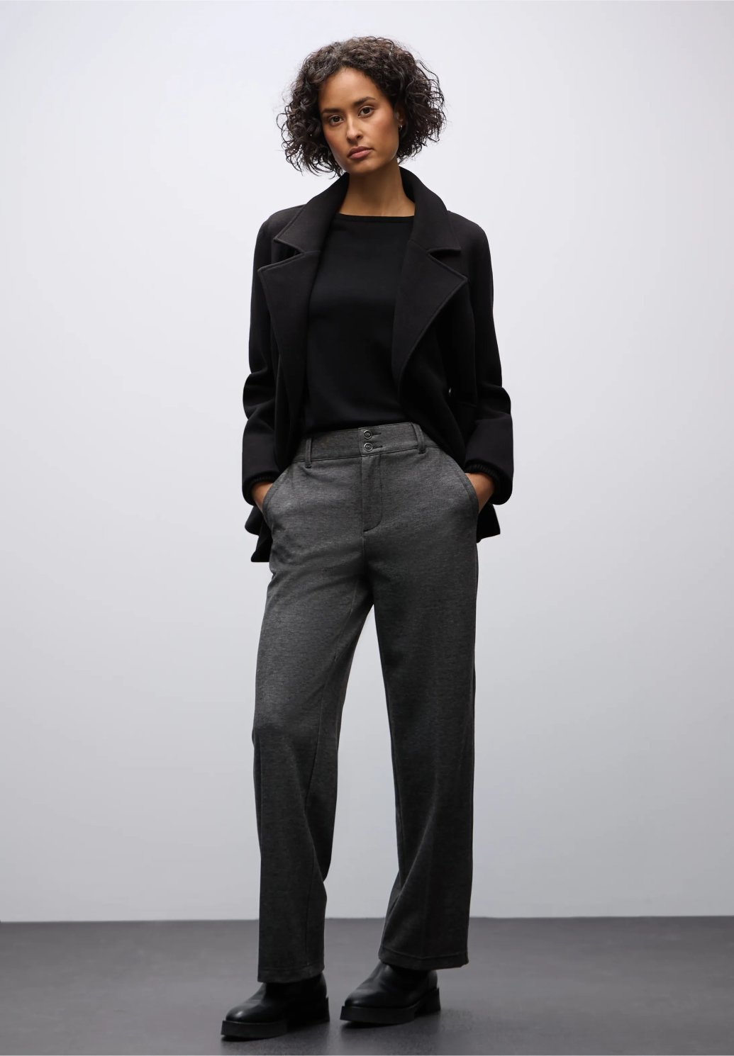Tyto dámské kalhoty ležérního střihu od Street One dodají vašemu šatníku klasický nádech díky vysokému pasu a rovným nohavicím. Elastický pas vzadu a zapínání na knoflíky zajišťují pohodlný a zároveň stylový střih. Ideální pro všestranný outfit, ve kterém se budete cítit dobře.