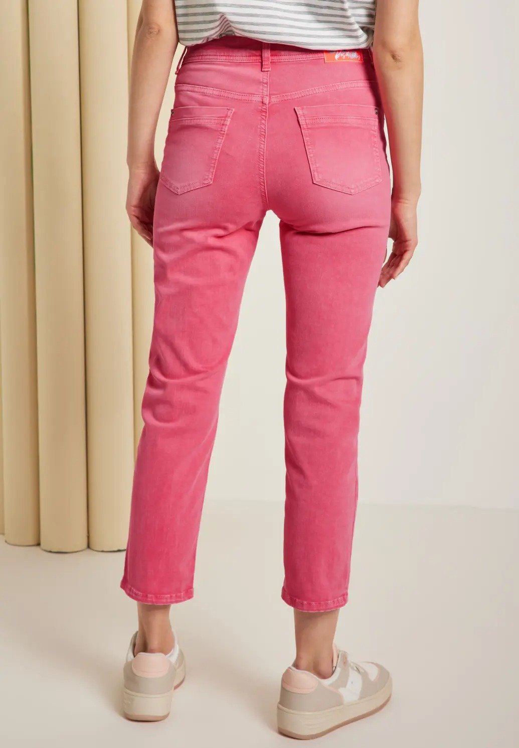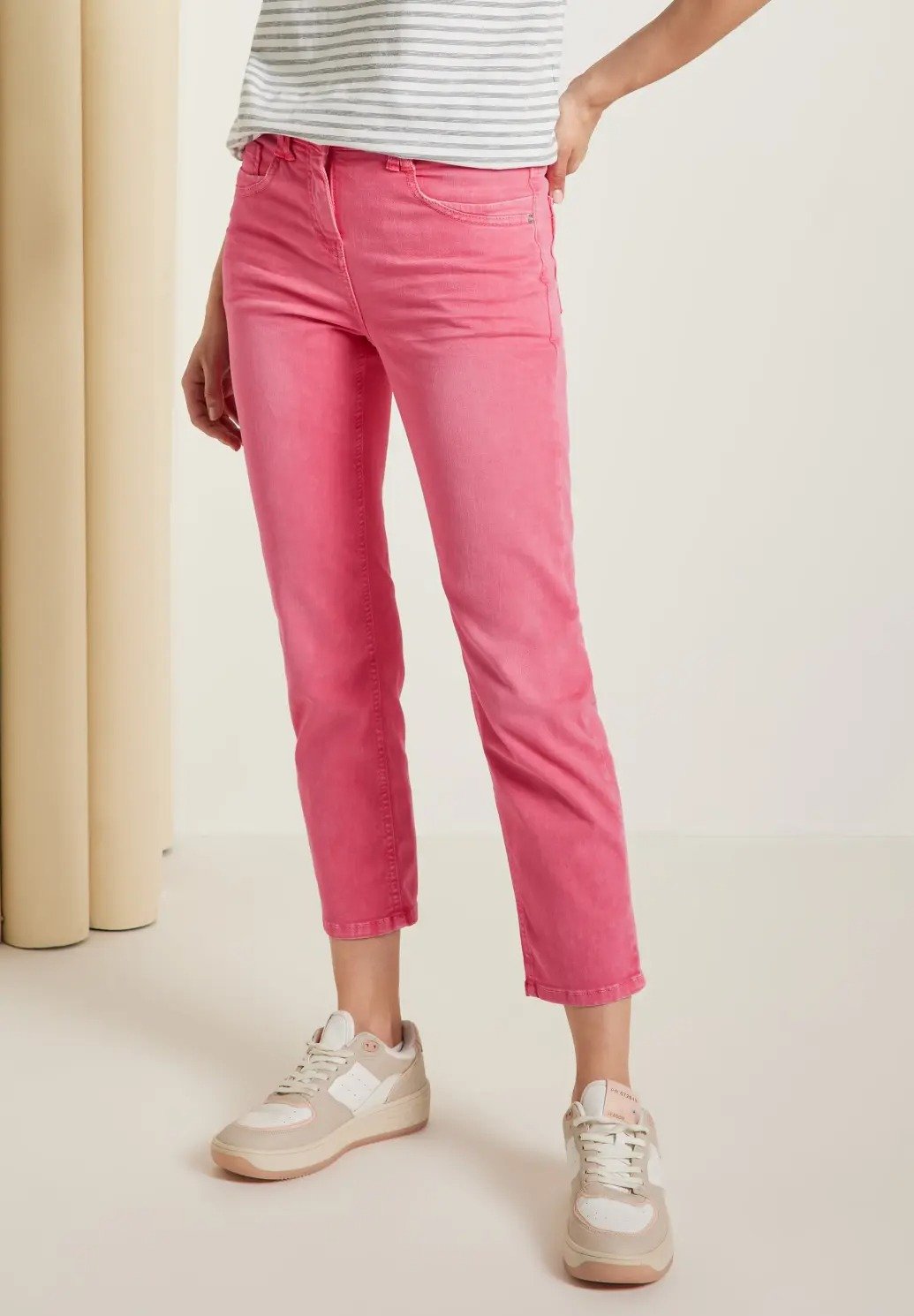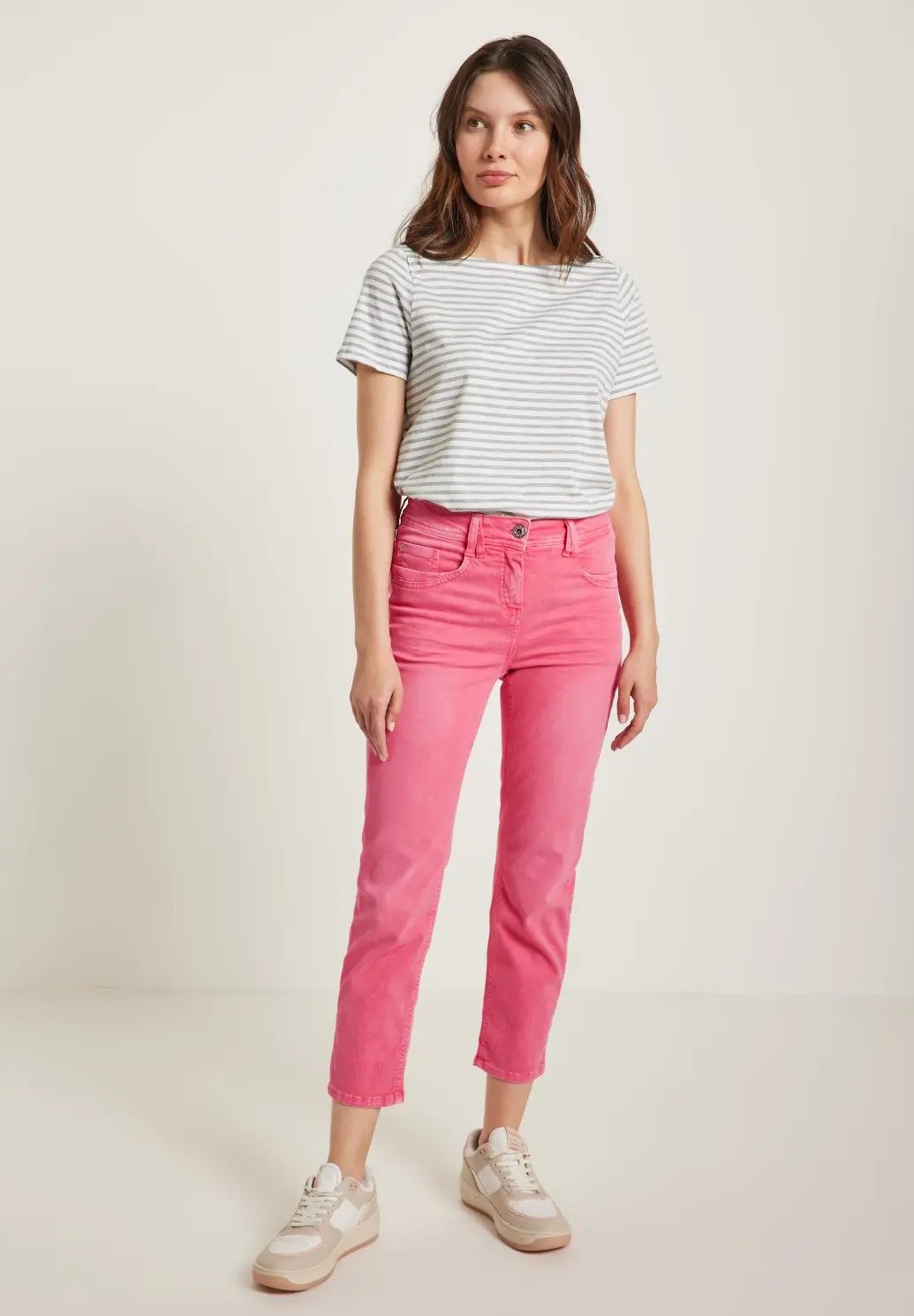 Dámské pohodlné džíny od Cecilu v atraktivní barvě, díky které přinášejí dobrou náladu do Vašeho šatníku. Džíny mají vysoký pas a oblíbené rovné a úzké nohavice v 7/8 délce, které lichotí ženské postavě. Úzké nohavice opticky protahují nohy a vykouzlí tak skvělou siluetu. Džíny se zapínají na zip a knoflík. Džíny jsou v klasickém 5-kapesním stylu. Lehká bavlněná směs zajišťuje měkký pocit na kůži a pohodlný střih nabízí vysoký komfort při nošení. Elastický materiál se ve všech směrech dokonale přizpůsobí vaší postavě. Tyto ležérní džíny zaujmou svým designem, který lze snadno kombinovat, ale získají si vás svým komfortem při nošení.