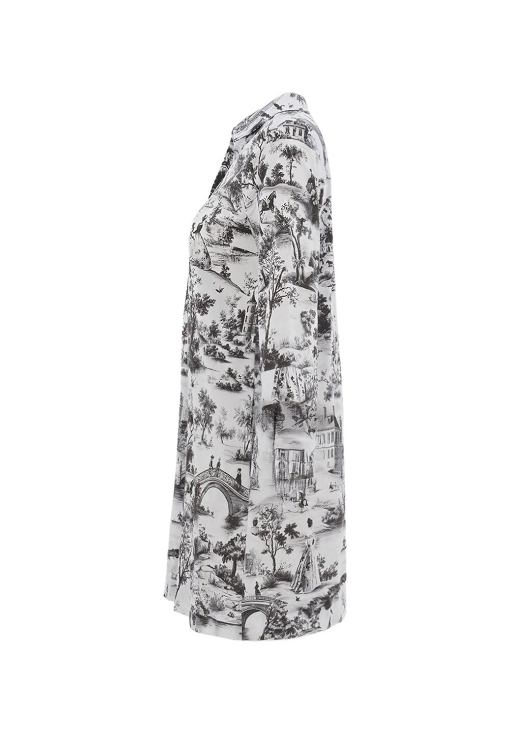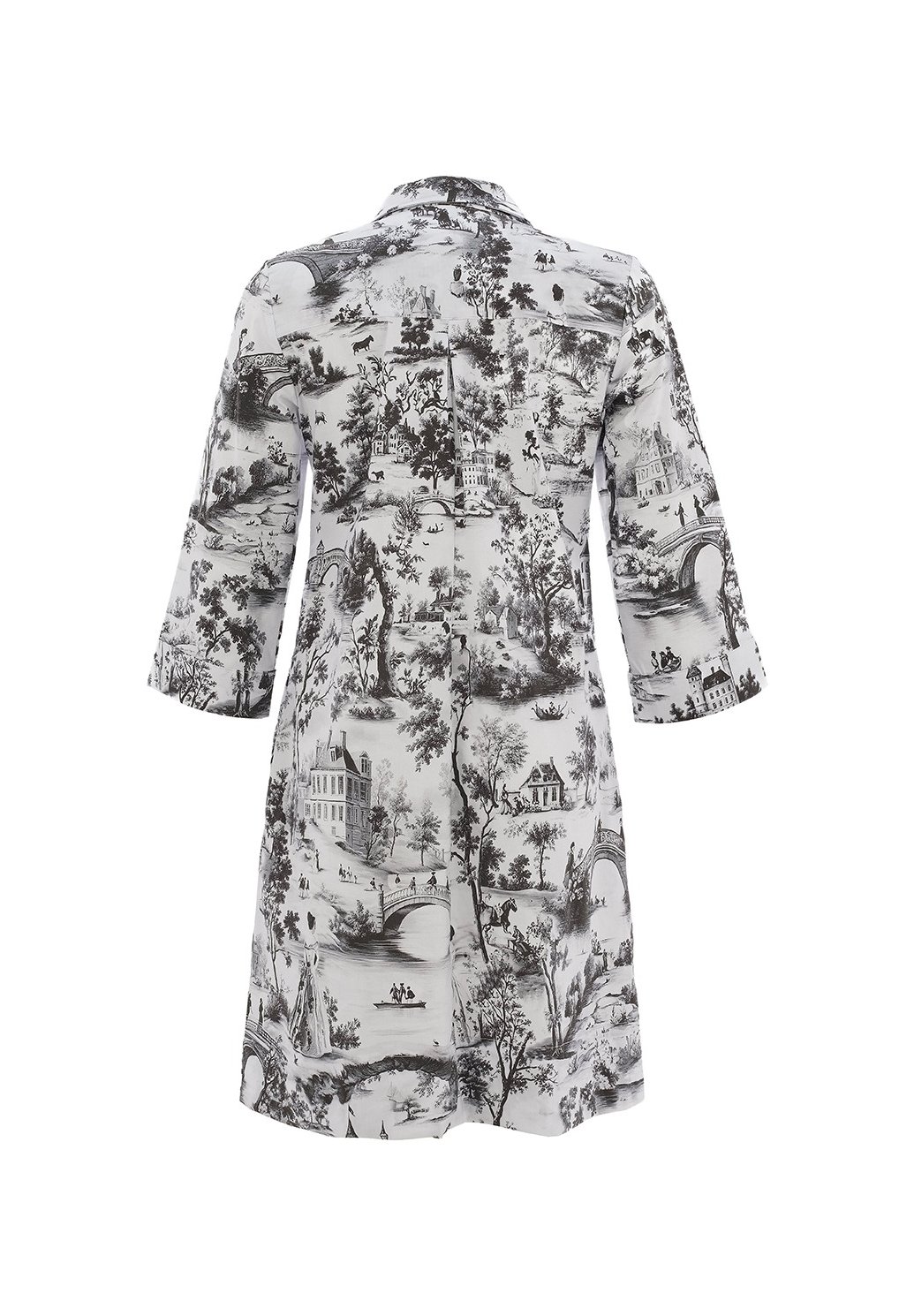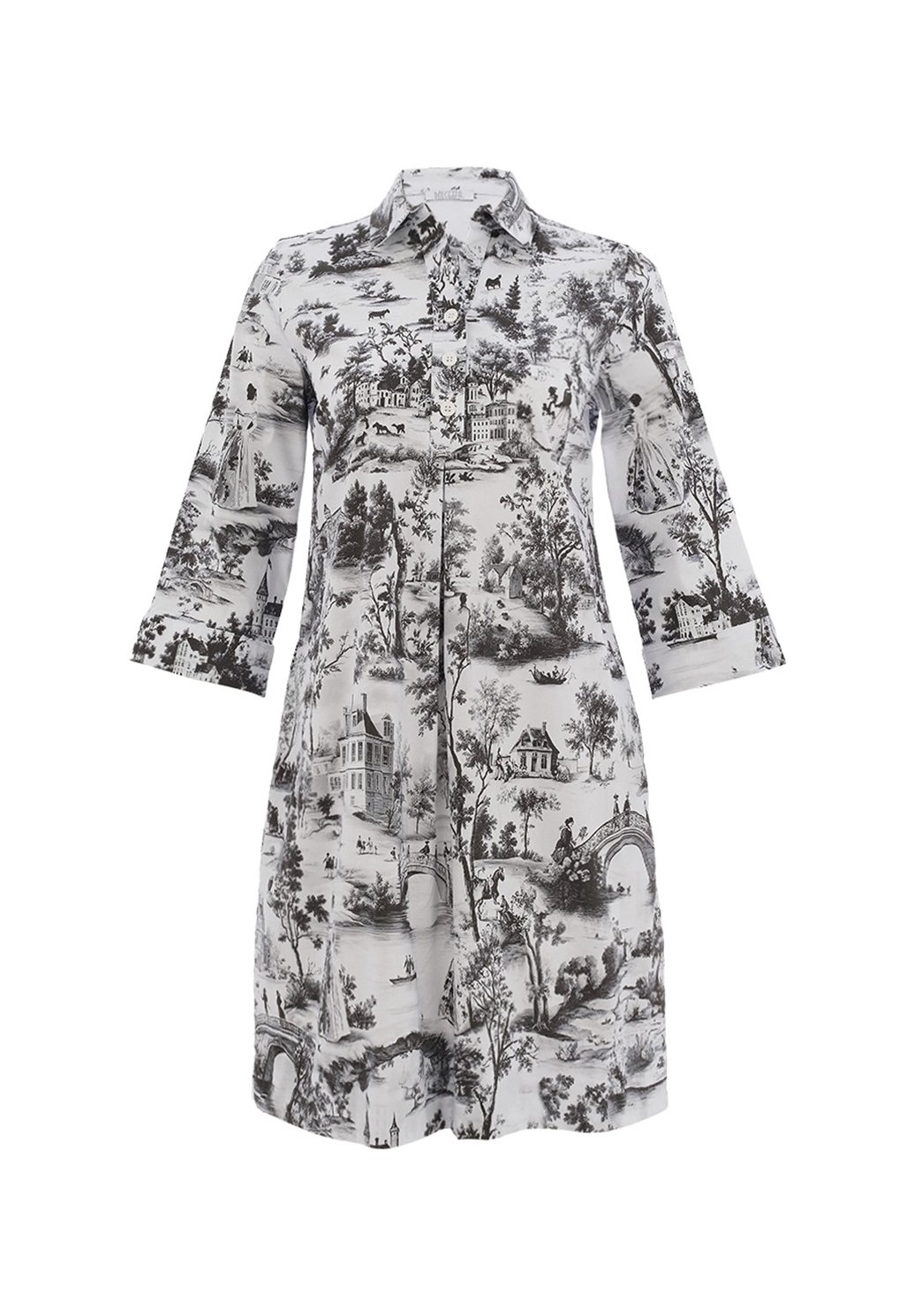 Dámské košilové šaty s originálním černo-bílým potiskem působí elegantně a zároveň velmi stylově. Mají klasický límeček, zapínání na knoflíky a 3/4 rukávy, které dodávají modelu lehkost a pohodlí. Díky výraznému vzoru jsou šaty nepřehlédnutelným kouskem, který stačí doplnit jednoduchými doplňky. Skvěle se hodí pro každodenní nošení, do práce i na volný čas.
