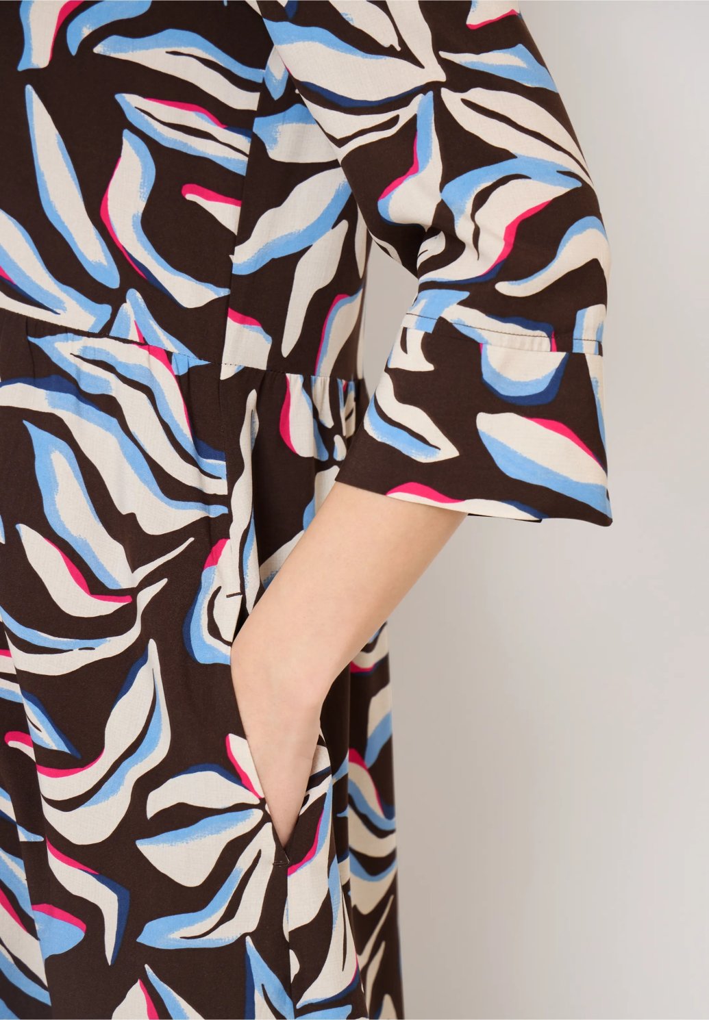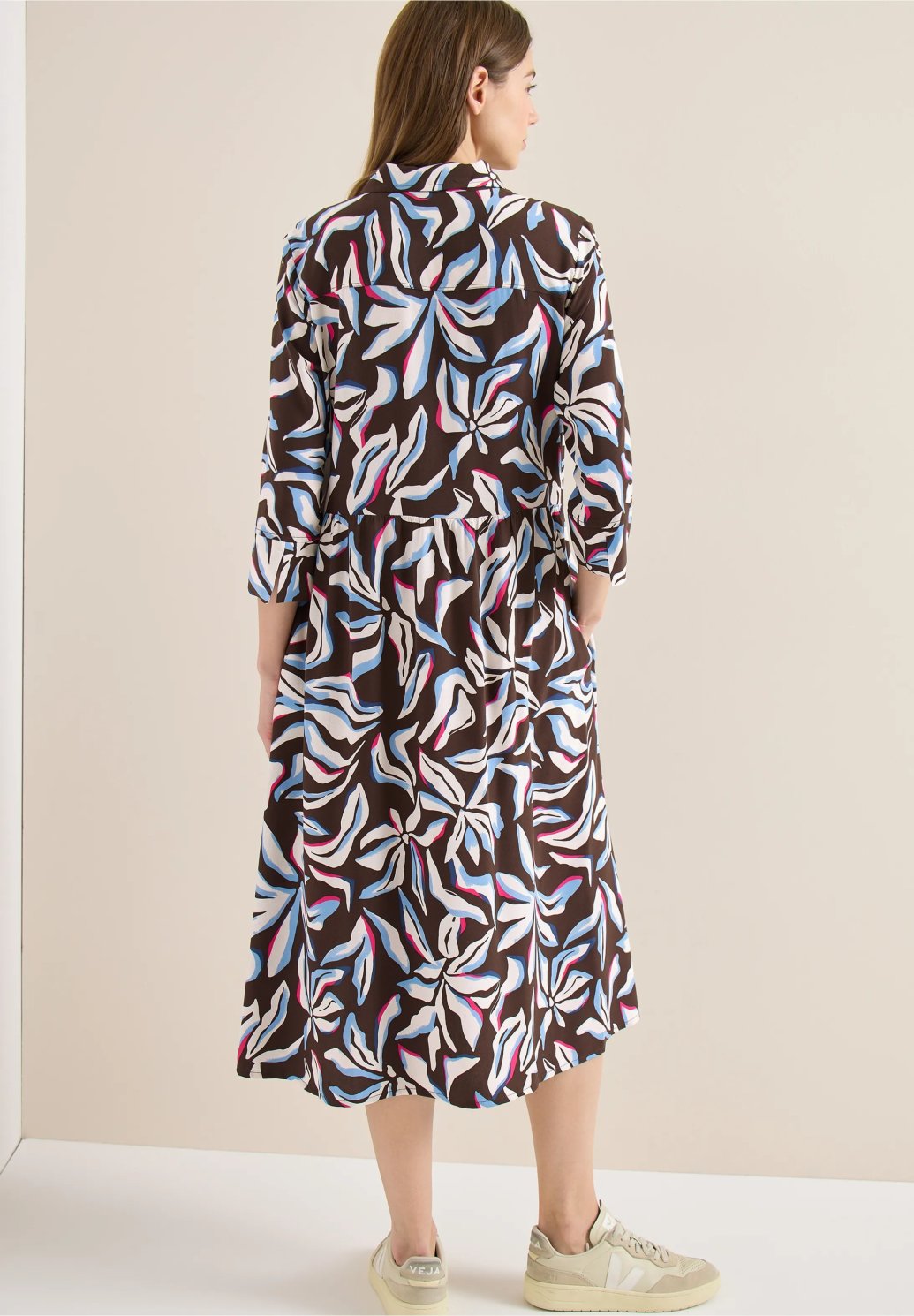 Tyto květinové viskózové šaty od značky CECIL pro ženy dodají vašemu vzhledu nádech květinového šmrncu. Měkká, splývavá látka je příjemná na dotek a zajišťuje lehký a vzdušný pocit. Košilový límec, tříčtvrteční rukávy a ozdobné zapínání na knoflíky dodávají šatům stylový nádech. Boční kapsy poskytují praktické pohodlí.