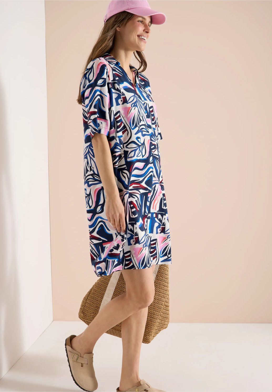 Lehké a vzdušné šaty, které zaujmou na první pohled výrazným barevným vzorem. Volnější střih zajišťuje maximální pohodlí při nošení, zatímco košilový límeček a zapínání na knoflíky dodávají šatům elegantní, ale stále ležérní vzhled. Krátké rukávy a příjemný materiál z nich dělají ideální kousek na teplé dny – do města, na dovolenou i volný čas. Stačí doplnit sandály nebo tenisky a máte perfektní letní outfit.