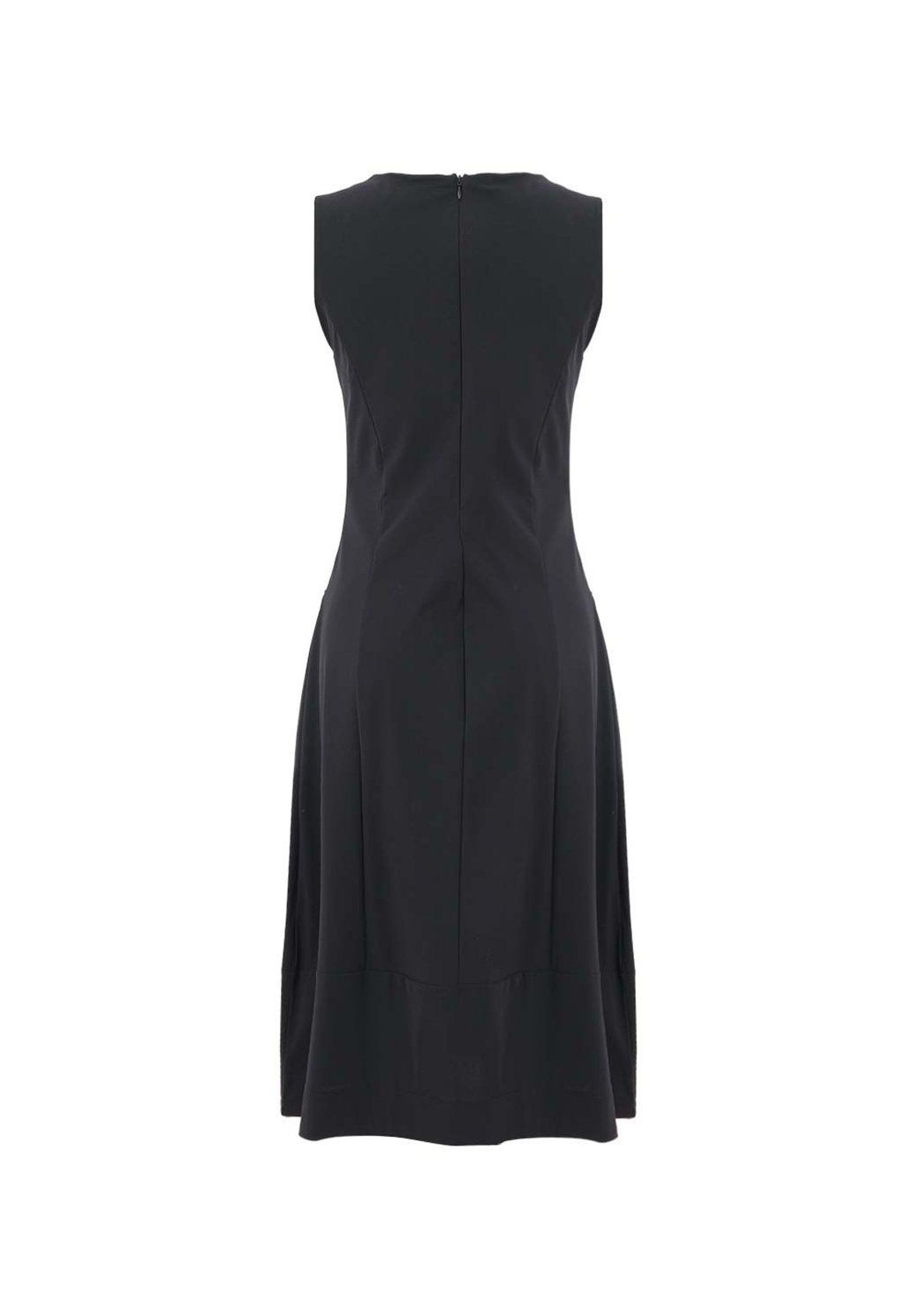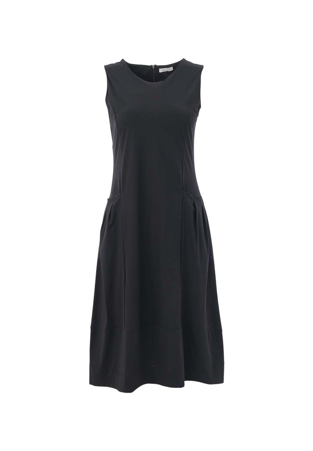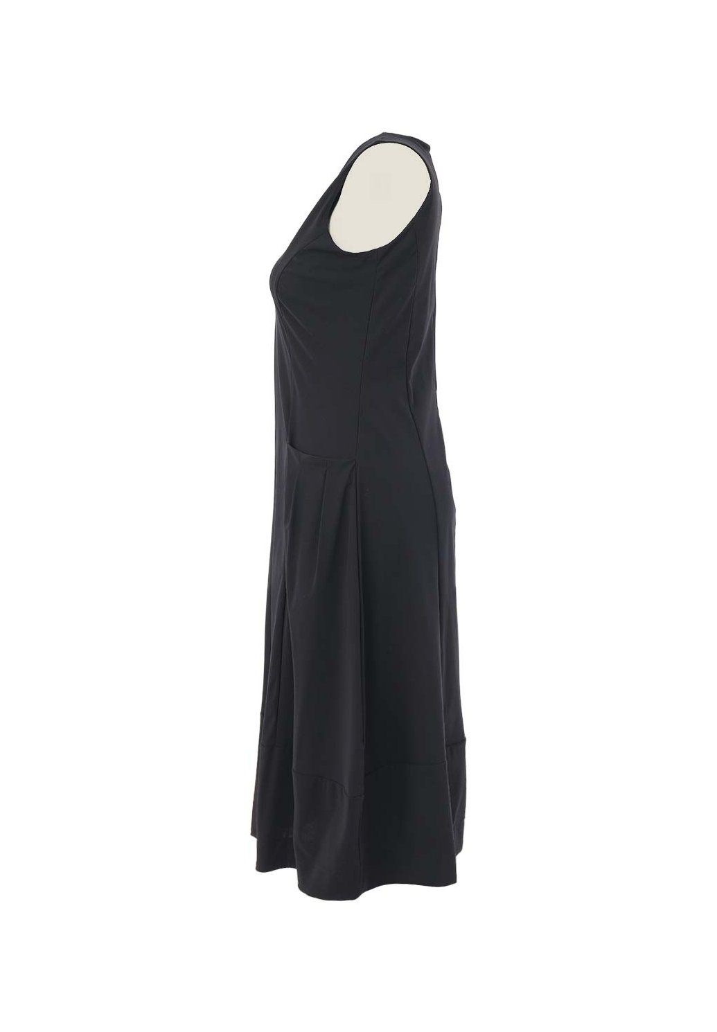 Dámské šaty v černém provedení jsou elegantním a nadčasovým kouskem, který v sobě spojuje jednoduchost, pohodlí a ženský styl. Střih bez rukávů působí čistě a velmi vkusně, zatímco delší splývavá sukně dodává modelu lehkost a jemnou eleganci. Zajímavým detailem jsou výraznější boční partie, které šatům propůjčují originální siluetu a moderní vzhled. Díky minimalistickému designu se šaty snadno kombinují s teniskami, sandálky i elegantnější obuví a hodí se do města, na dovolenou i pro slavnostnější chvíle.