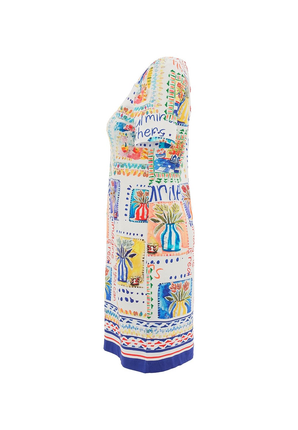 Dámské šaty s originálním uměleckým vzorem, které zaujmou svou barevností a jedinečným designem inspirovaným ruční malbou. Přiléhavý střih krásně kopíruje siluetu, zatímco krátké rukávy a kulatý výstřih zajišťují pohodlí při nošení. Příjemný, pružný materiál se dobře přizpůsobí postavě a je ideální i pro celodenní nošení. Šaty jsou skvělou volbou pro letní dny, městské procházky i neformální společenské příležitosti, kdy chcete vyniknout a dodat outfitu osobitý styl.