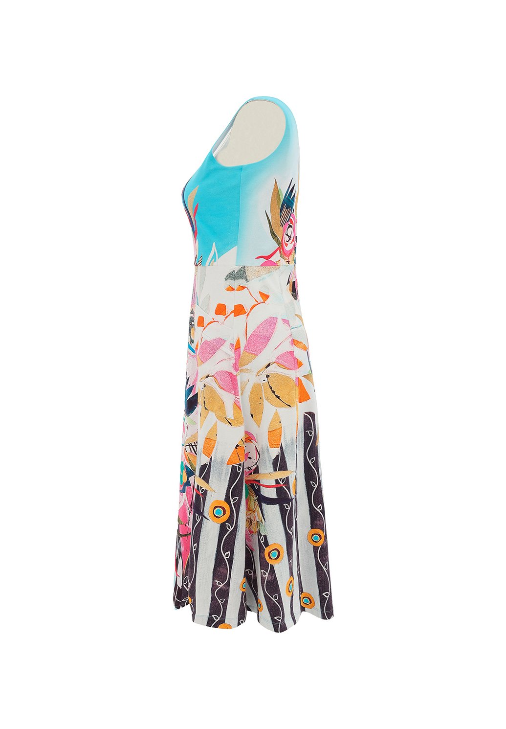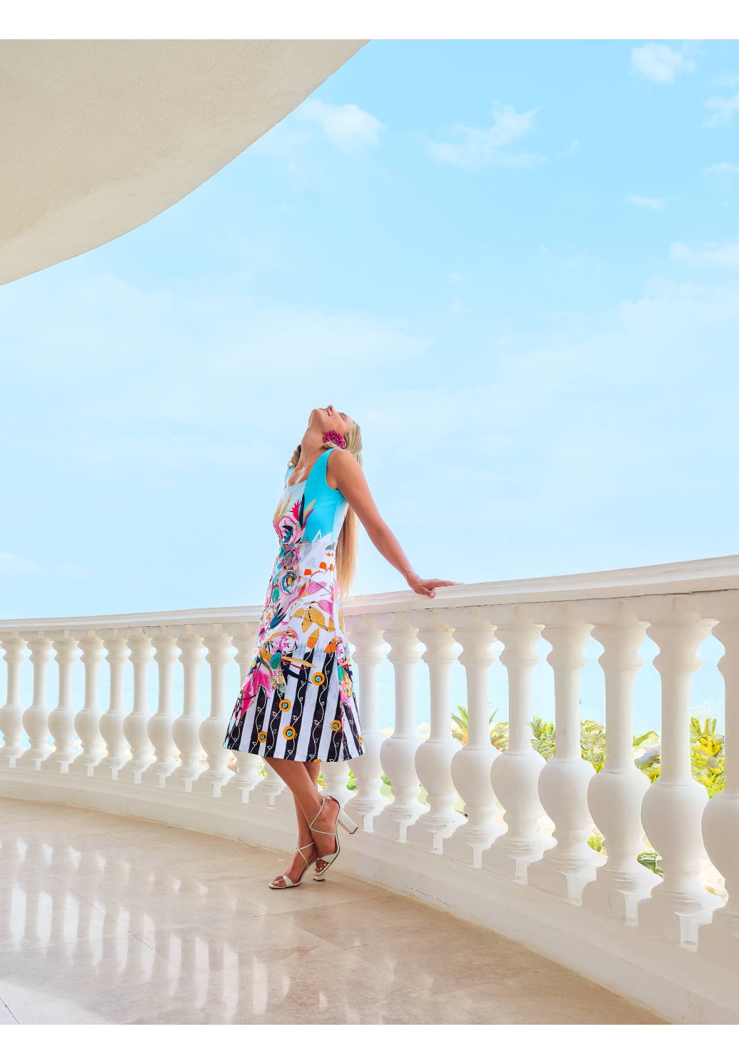 Elegantní dámské šaty s výrazným barevným květinovým potiskem zaujmou na první pohled a dodají vašemu outfitu svěžest a ženskost. Lichotivý střih krásně zvýrazní postavu, zatímco lehký a příjemný materiál zajistí maximální pohodlí při nošení. Ideální volba na letní dny, dovolenou, společenské události i pro stylové každodenní nošení. Nadčasový a originální kousek, ve kterém budete nepřehlédnutelná.