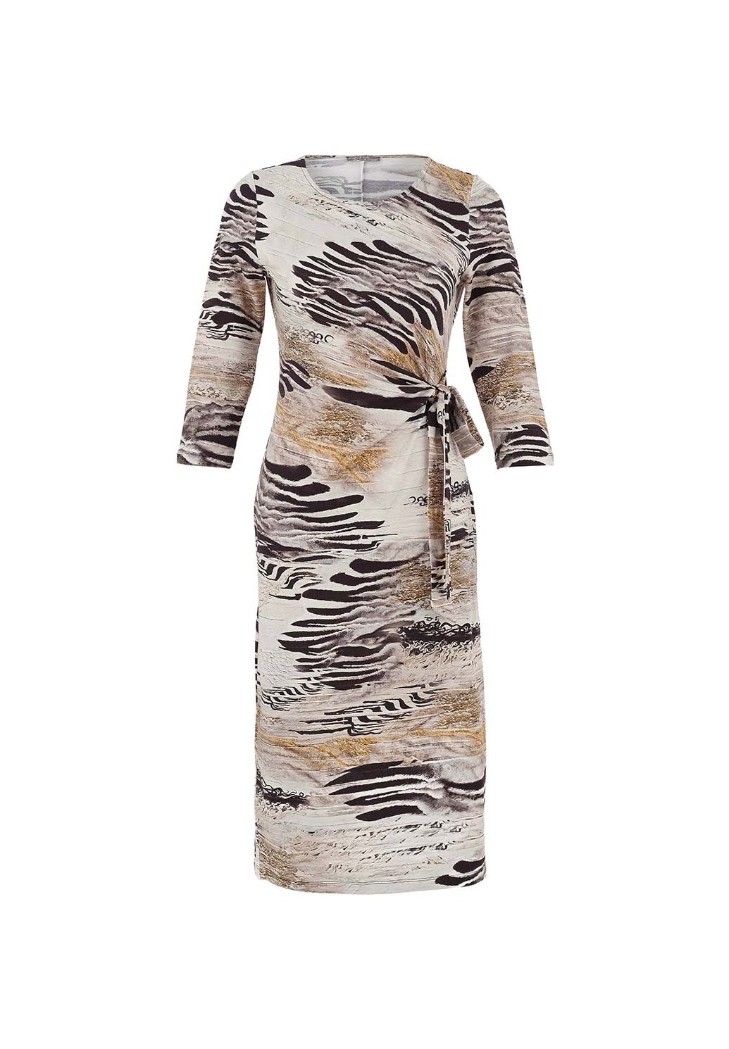 Tyto dámské midi šaty zaujmou svým elegantním vzorovaným designem. Mají klasický kulatý výstřih, tříčtvrteční rukávy a pohodlný střih, který lichotí postavě. Stylový kousek vhodný jak na každodenní nošení, tak na speciální příležitosti.