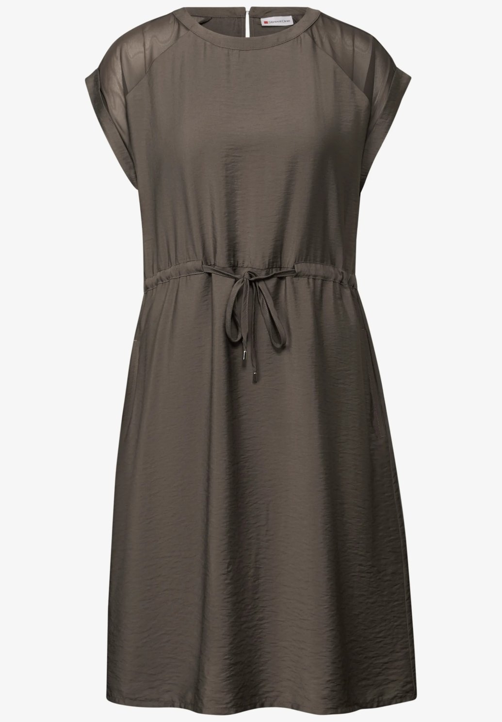 Tyto šaty od Street One pro ženy sahající až ke kolenům zaujmou sofistikovanými síťovanými detaily a funkčními prvky. Kulatý výstřih, krátké rukávy a stahovací šňůrka v pase zajišťují dokonalý střih. Boční kapsy dělají z těchto šatů praktického společníka pro ležérní letní outfity.