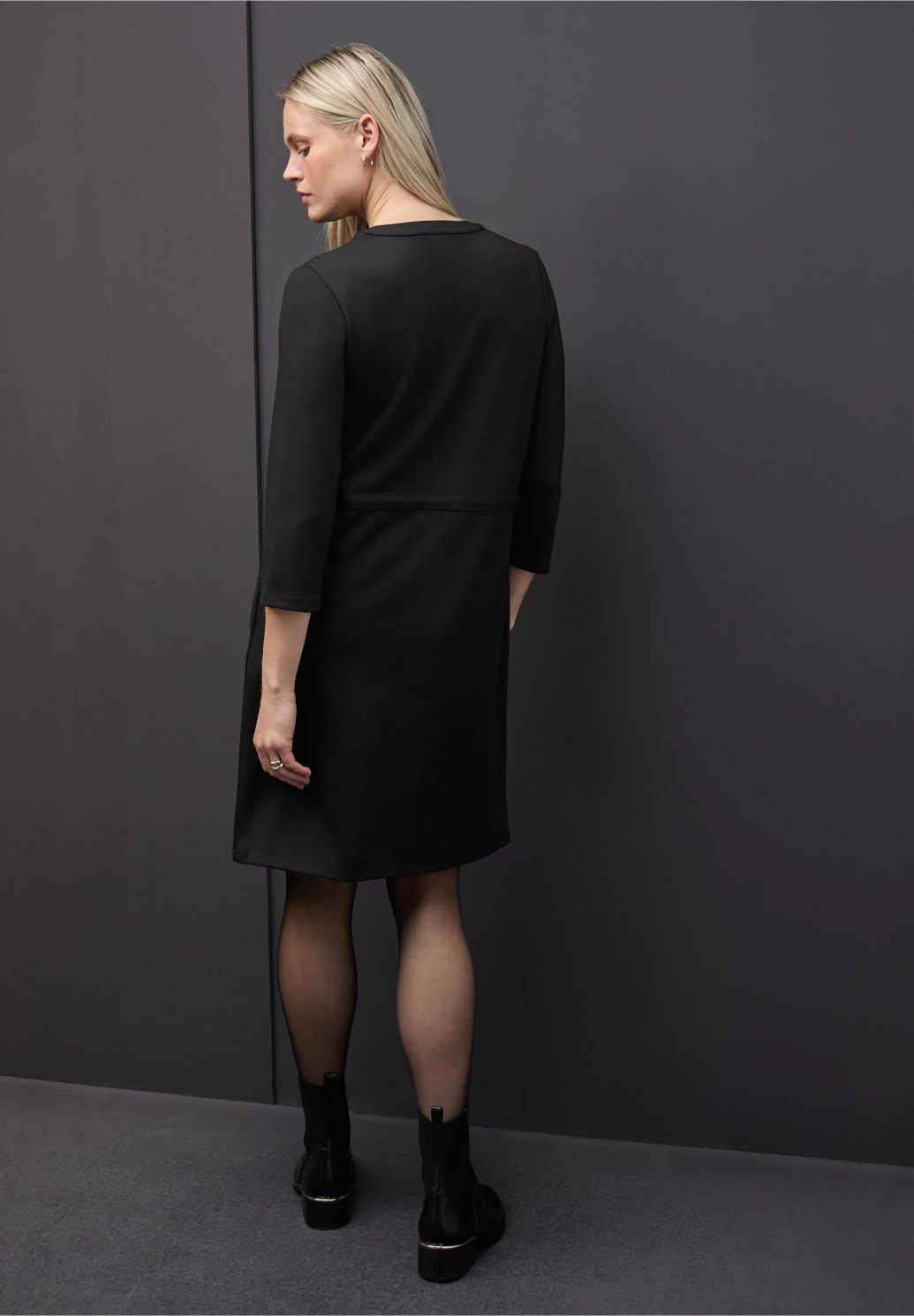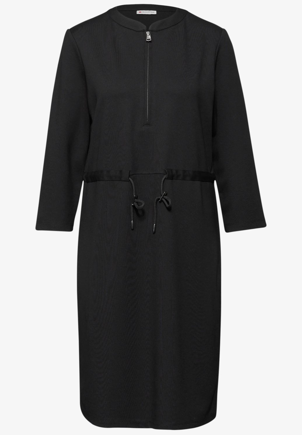 Tyto žerzejové šaty od Street One pro ženy v délce ke kolenům kombinují sportovní prvky s ženskou lehkostí. Kulatý výstřih s ozdobným zipem a stahovací šňůrkou v pase vytváří ležérní vzhled. Směs viskózy a streču nabízí pohodlné nošení po celý den.