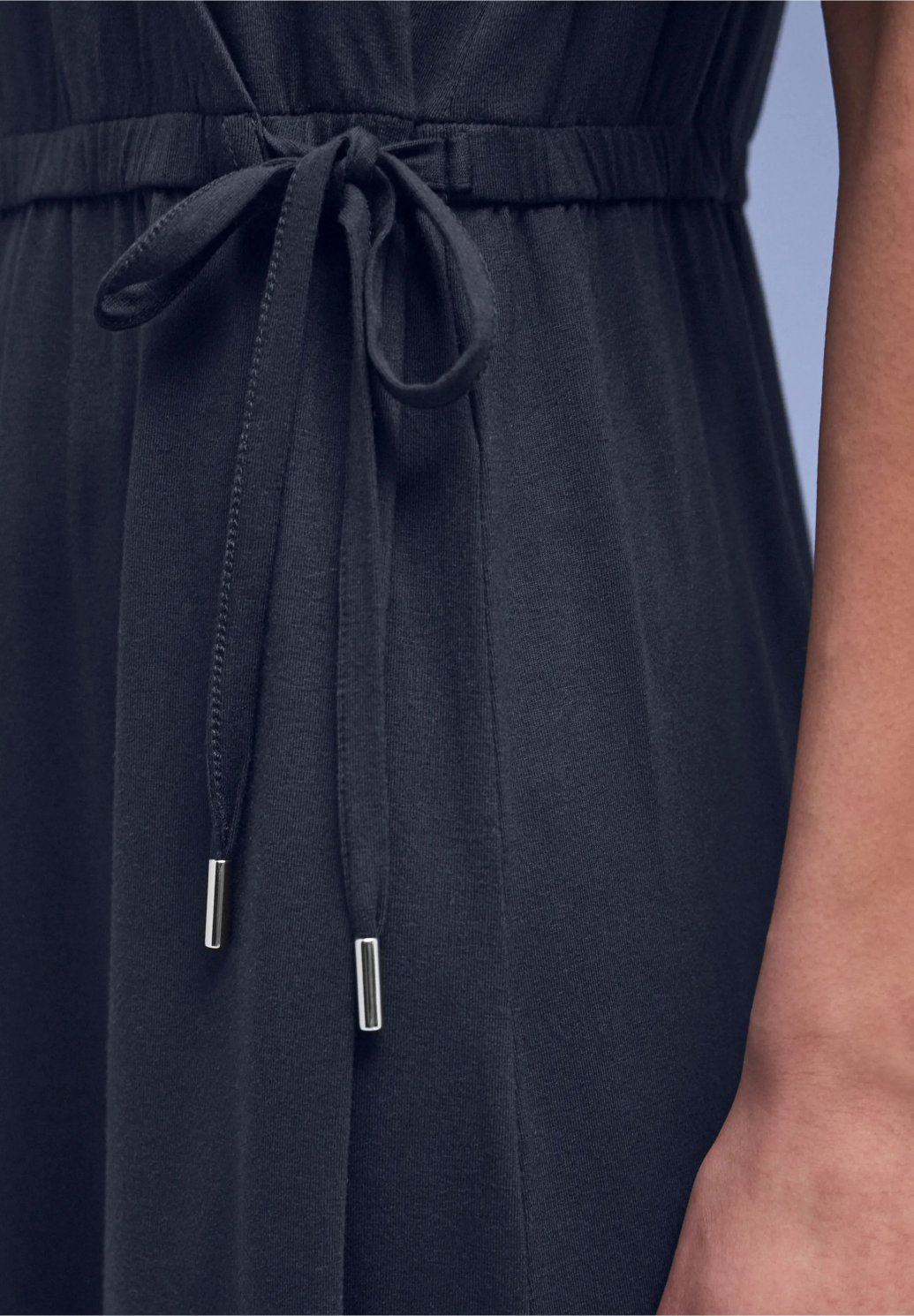 Tyto žerzejové šaty vás hýčkají jemně splývavou viskózovou tkaninou a ženským zavinovacím detailem. Výstřih do V a krátké rukávy dodávají šatům midi délky lehký a vzdušný vzhled, zatímco stahovací pas jemně zdůrazňuje vaši postavu. Boční rozparky zajišťují pohodlnou volnost pohybu. Všestranné ležérní šaty, které vás budou stylově doprovázet každodenním životem.