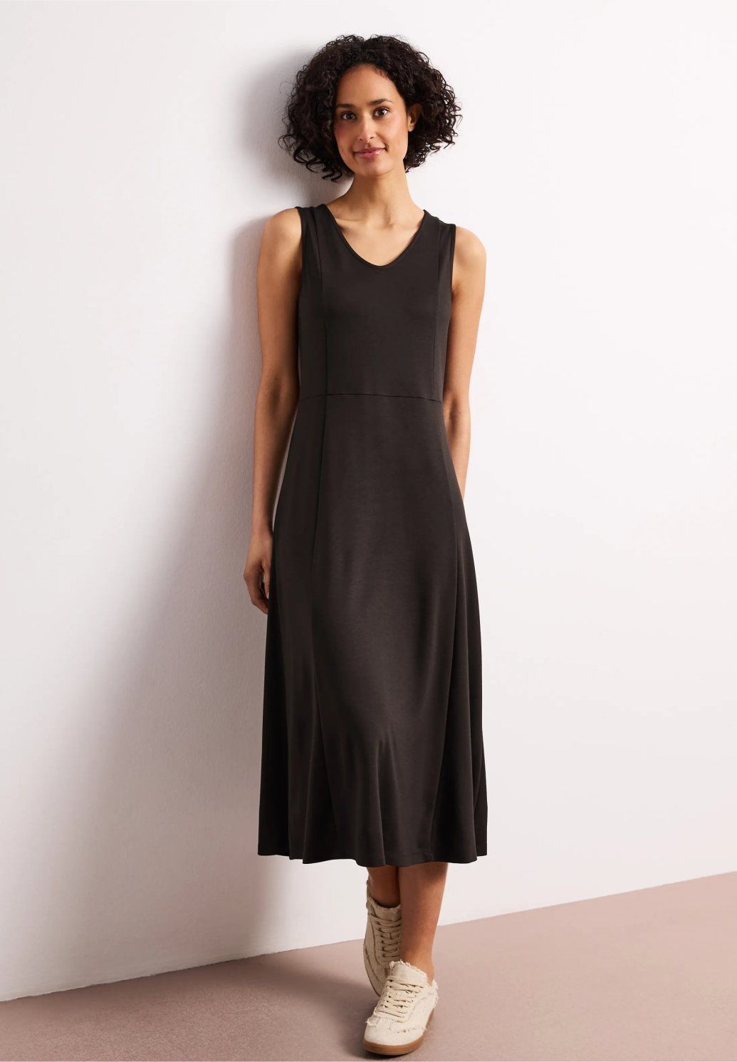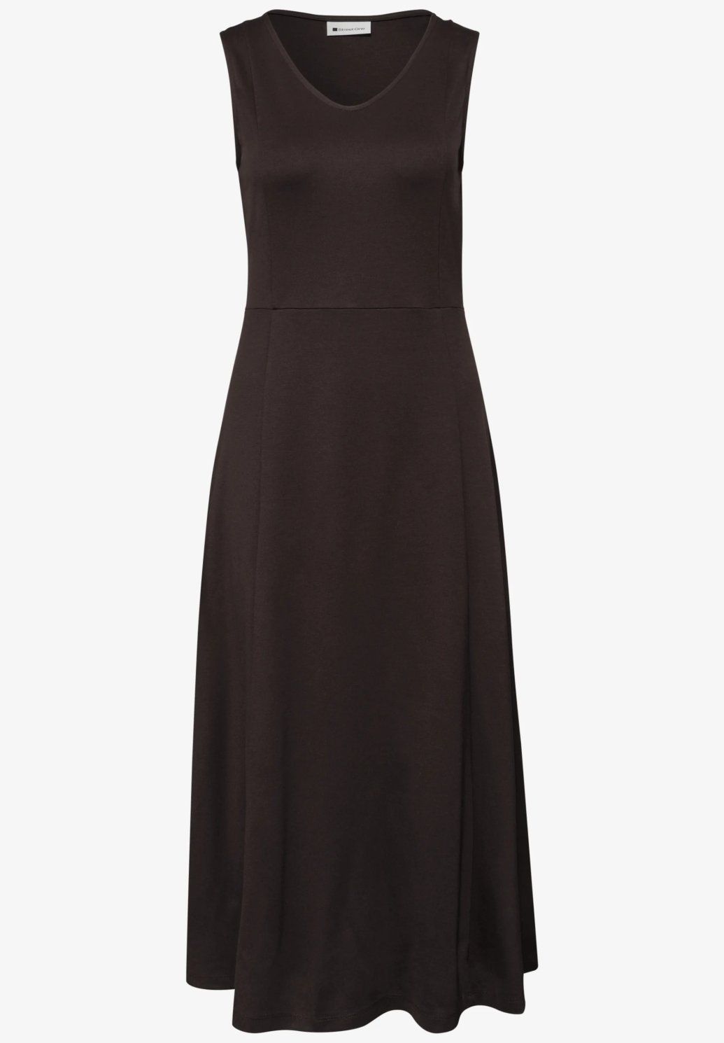 Elegantní dámské šaty v jednoduchém jednobarevném provedení jsou nadčasovým kouskem, který by neměl chybět v žádném šatníku. Přiléhavější horní část bez rukávů krásně navazuje na volně splývavou sukni v midi délce, díky čemuž šaty působí velmi женsky a zároveň pohodlně. Snadno je zkombinujete s teniskami pro ležérní denní outfit i s elegantními doplňky pro slavnostnější příležitosti.
