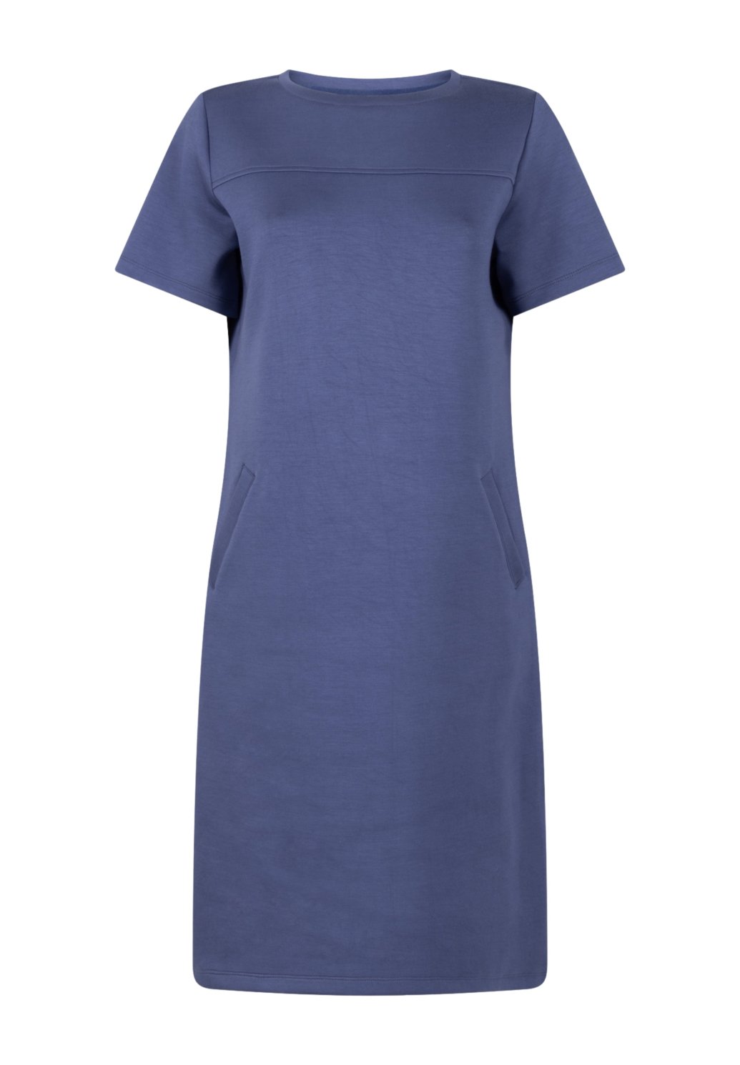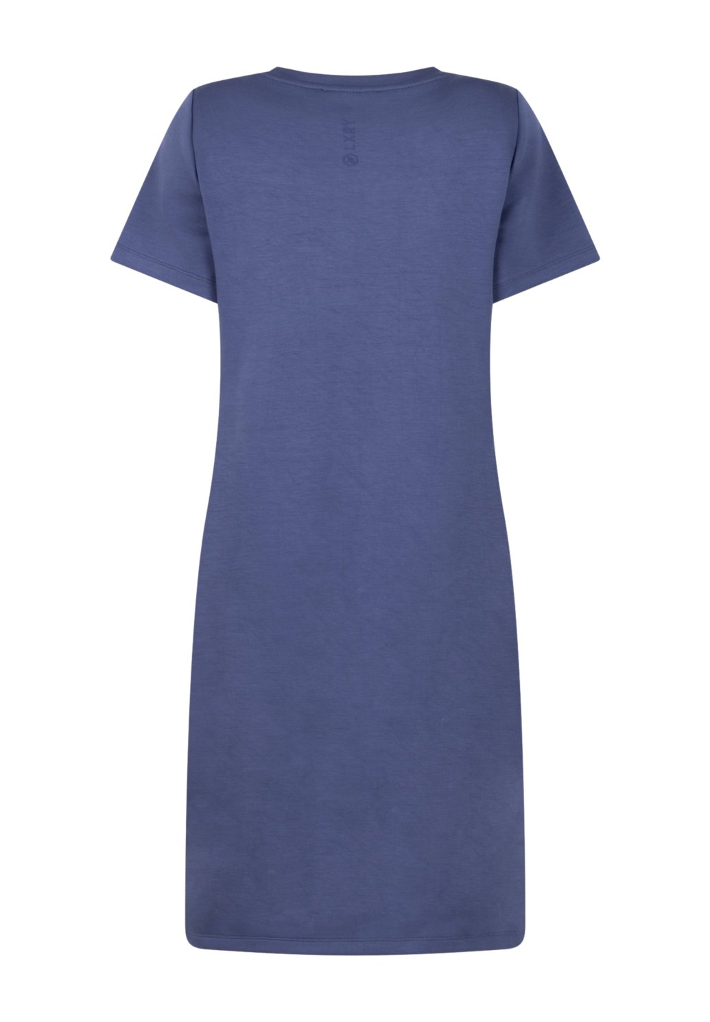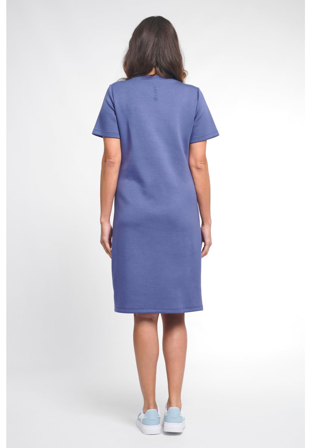Modré šaty Femmz jsou pohodlné žerzejové šaty se sportovním nádechem. Rovný střih, krátké rukávy a jemné švy vytvářejí moderní, minimalistický vzhled.