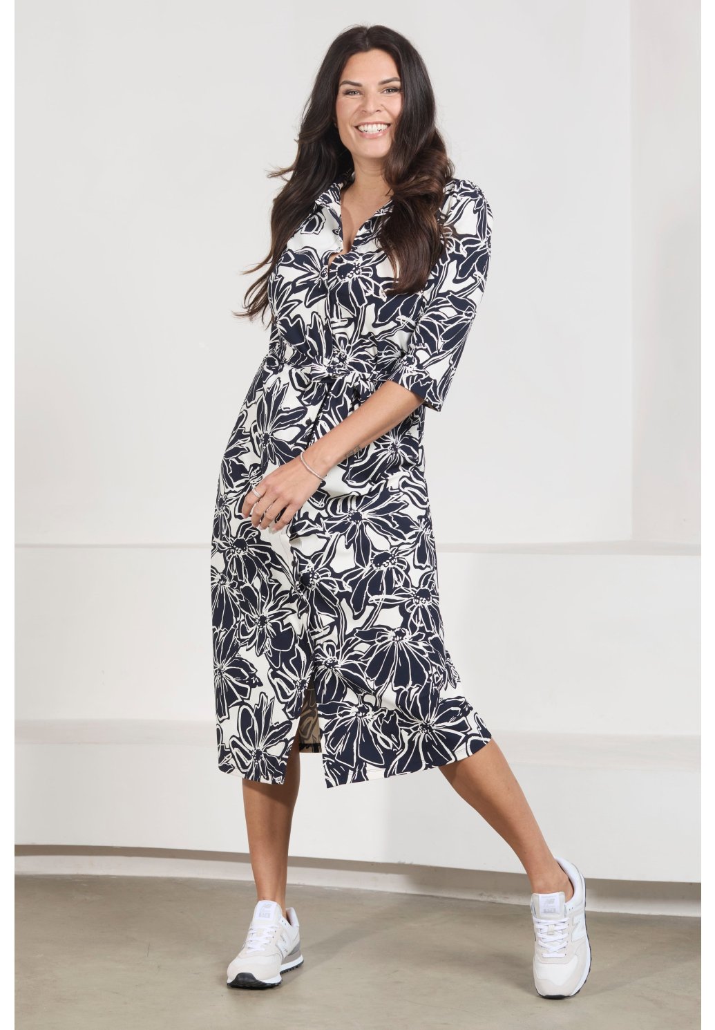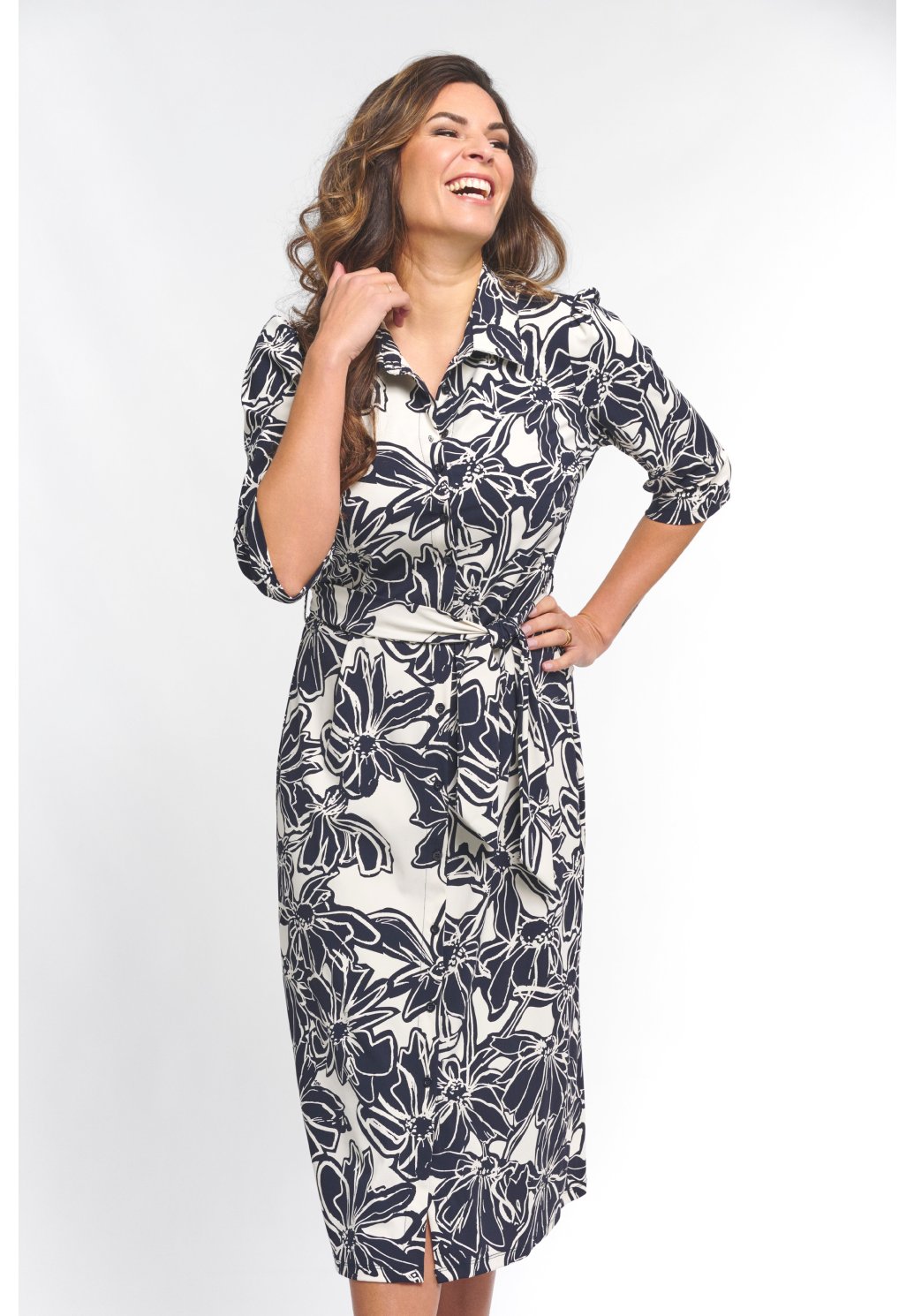 Šaty Travel Philippa Night Blue jsou elegantní cestovní šaty s tmavě modro-bílým květinovým potiskem. Mají polodlouhé rukávy, límeček a zapínání na knoflíky vpředu, doplněné páskem v pase pro lichotivé zvýraznění postavy. Stylová a zároveň pohodlná volba na cesty.