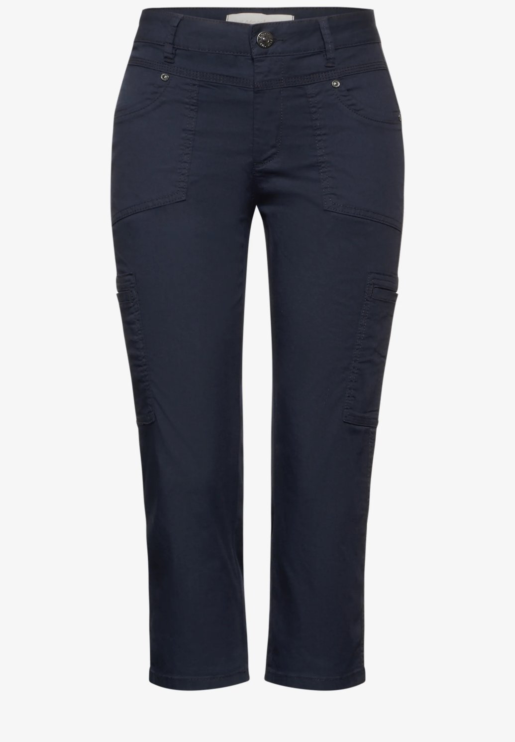 Sportovní 3/4 cargo kalhoty Street One pro ženy jsou perfektní volbou pro běžné aktivity. Jejich ležérní střih a střední pas s úzkými nohavicemi nabízejí moderní střih a pohodlný střih dodávají kalhotám praktický nádech, zatímco kvalita bavlněného kepru se strečem zajišťuje optimální volnost pohybu.