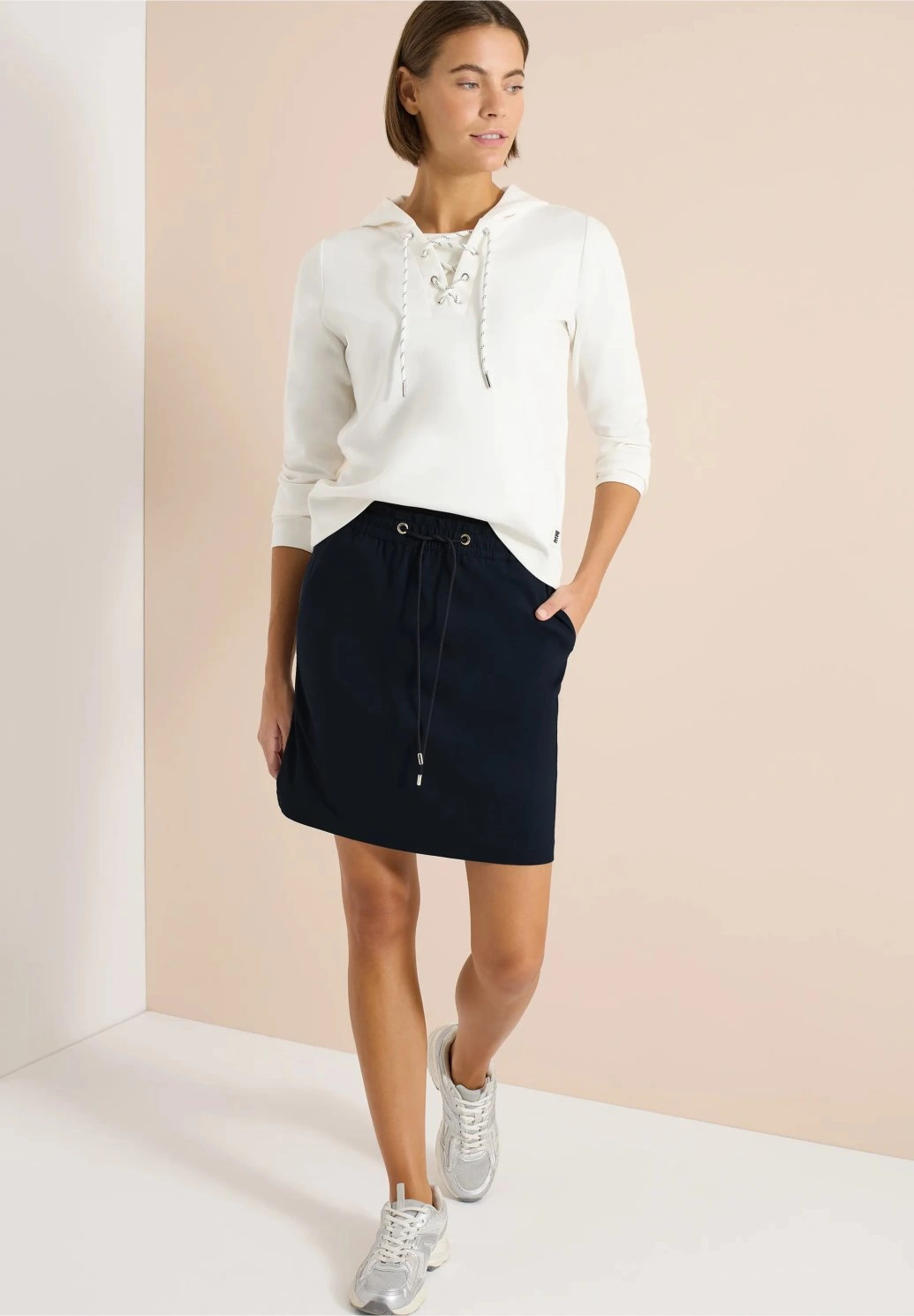 Pohodlná dámská sukně v jednoduchém sportovně-elegantním stylu je ideální volbou pro každodenní nošení. Pružný pas se šňůrkou zajišťuje perfektní přizpůsobení postavě a příjemný materiál poskytuje maximální komfort po celý den. Minimalistický design umožňuje snadné kombinování s tričky, mikinami i košilemi – skvělá volba do práce, na volný čas i cestování.