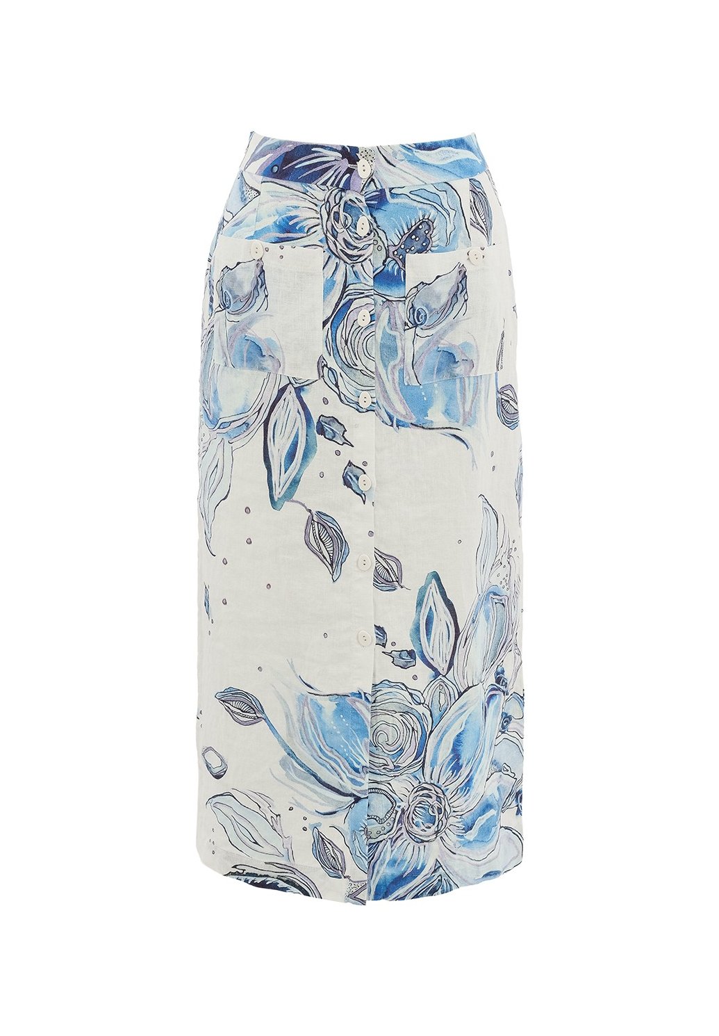 Dámská sukně Dolcezza zaujme na první pohled jemným květinovým potiskem v elegantních modrobílých tónech. Lehký, vzdušný materiál je ideální pro teplejší dny a zajišťuje příjemné nošení po celý den. Sukně má pohodlný střih doplněný o přední zapínání na knoflíky a praktické kapsy, které jí dodávají moderní a ležérní vzhled. Skvěle se kombinuje s jednoduchým topem i elegantní halenkou — perfektní kousek pro svěží a ženský outfit.