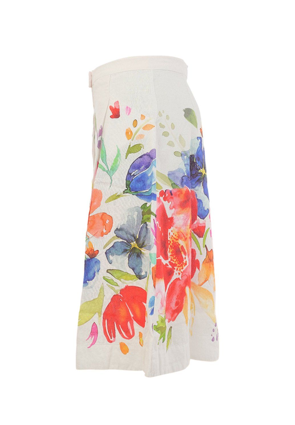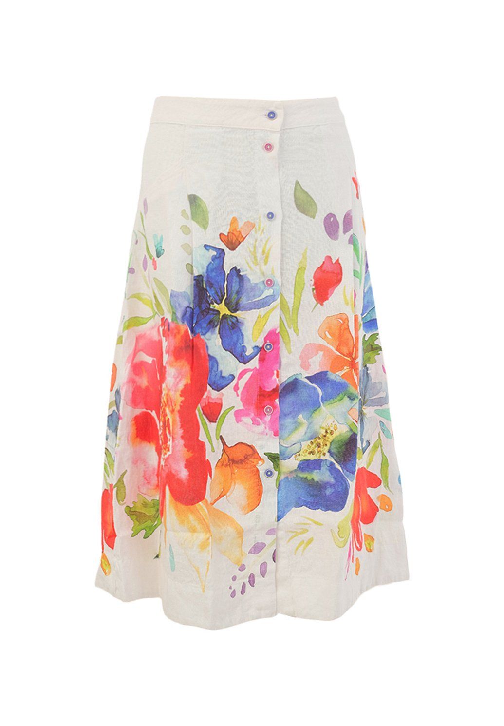Dámská sukně s výrazným květinovým potiskem je nepřehlédnutelným kouskem, který rozzáří každý outfit. Světlý podklad v kombinaci s barevným akvarelovým motivem působí svěže, jemně a velmi žensky. Áčkový střih krásně splývá, lichotí postavě a zároveň zajišťuje pohodlné nošení po celý den. Ozdobné knoflíky na přední straně dodávají sukni originální detail a podtrhují její elegantní vzhled. Skvěle ji zkombinujete s jednoduchým topem, halenkou i lehkým svetříkem a vytvoříte stylový outfit do města, na dovolenou i na letní společenské příležitosti.