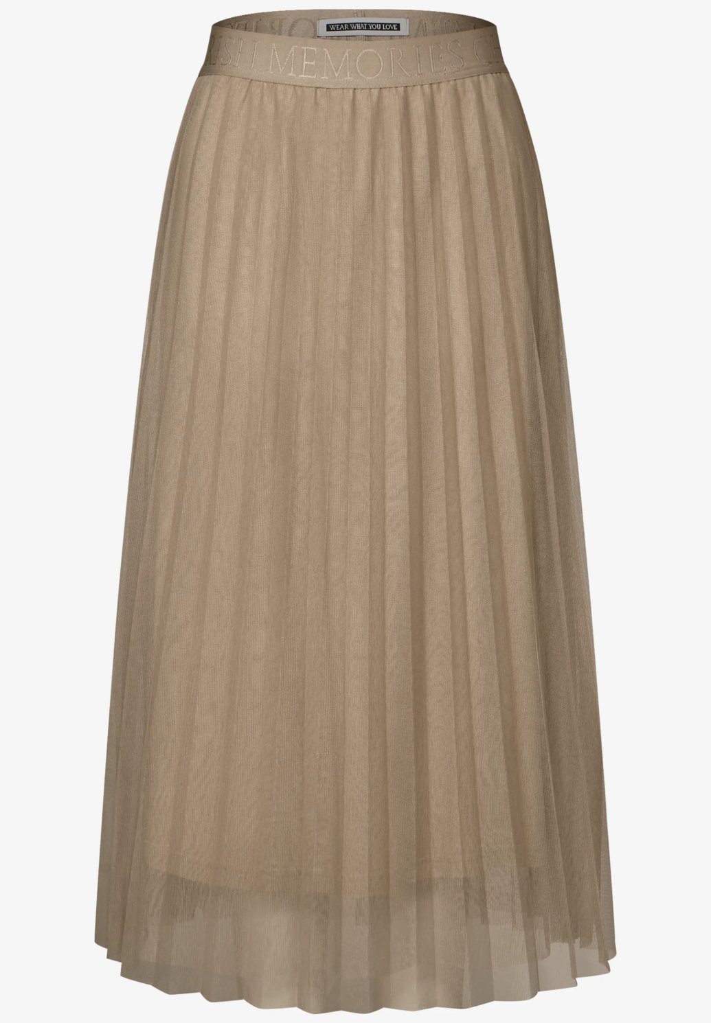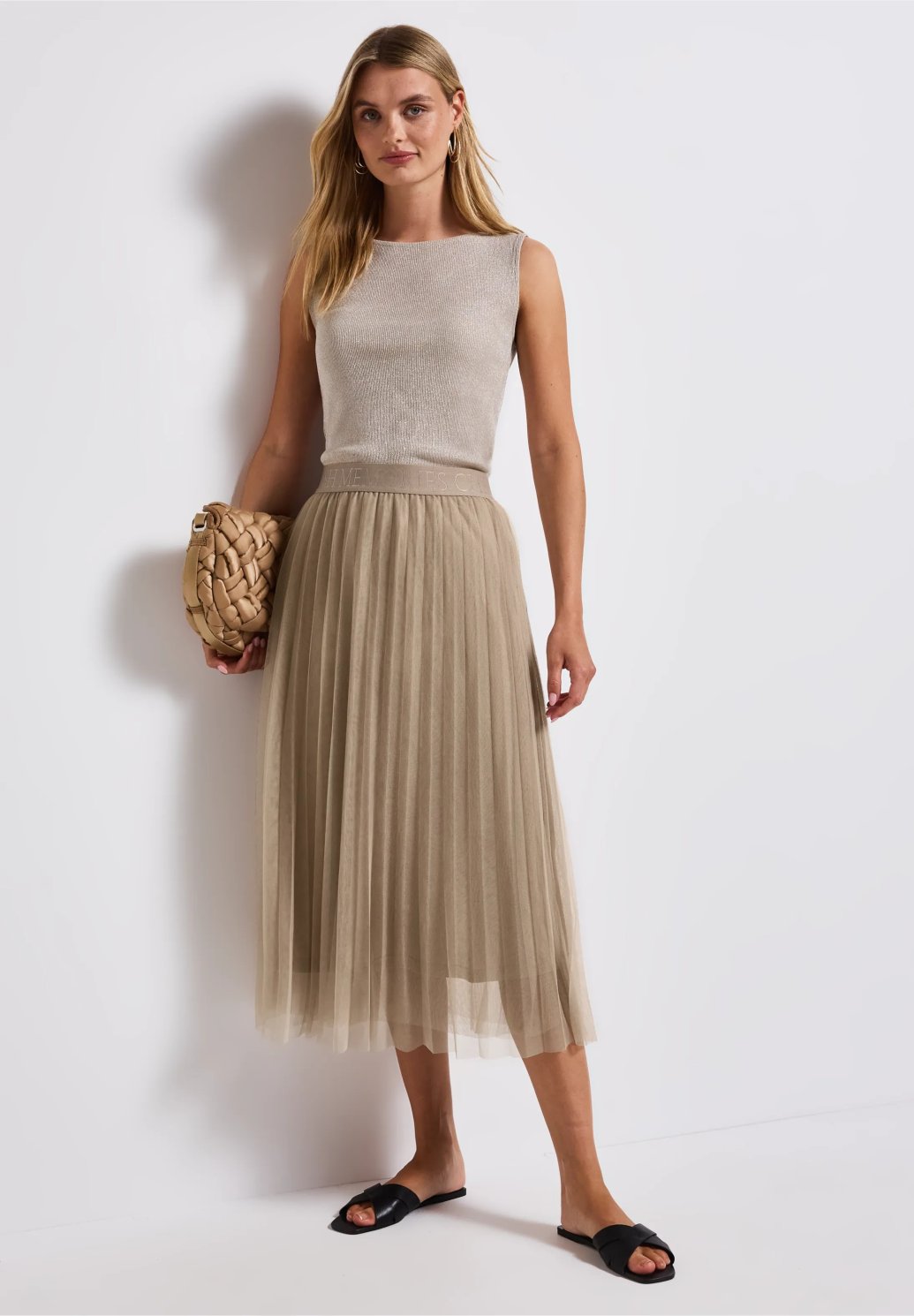 Tato jemně splývavá midi sukně od Street One pro ženy kombinuje lehký tyl s módní plisovanou strukturou. Elastický pas zajišťuje pohodlné nošení.