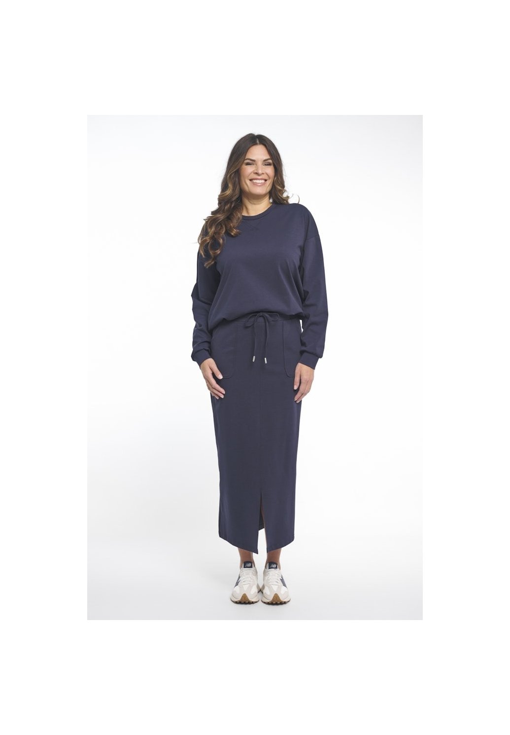 Stylová dámská sukně v nadčasové tmavě modré barvě je ideální volbou pro pohodlné a elegantní nošení. Příjemný, pružný materiál zajišťuje maximální komfort po celý den, zatímco elastický pas se šňůrkou umožňuje snadné přizpůsobení postavě. Praktické kapsy dodávají sukni ležérní nádech a přední rozparek zajišťuje volnost pohybu i ženský vzhled. Skvěle se kombinuje s tričkem, halenkou i mikinou — perfektní kousek pro každodenní outfit.