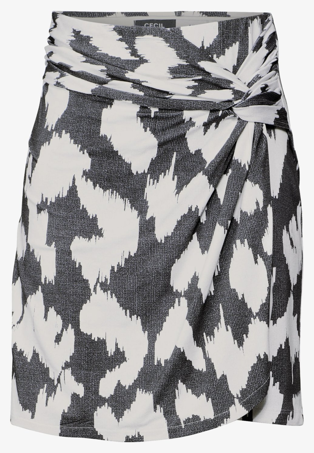 Tato krátká sukně od značky CECIL pro ženy kombinuje vzhled sukně s pohodlím kraťasů. Zavinovací detail vpředu a elastický pas zajišťují lichotivý střih a pohodlné nošení. Grafický vzor dotváří celkový vzhled, zatímco směs viskózy a streču zajišťuje hebký pocit.
